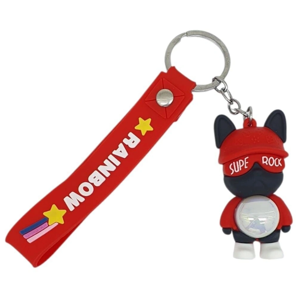 Figürlü ve Işıklı Silikon Anahtarlık -  Supe Rock - Kırmızı