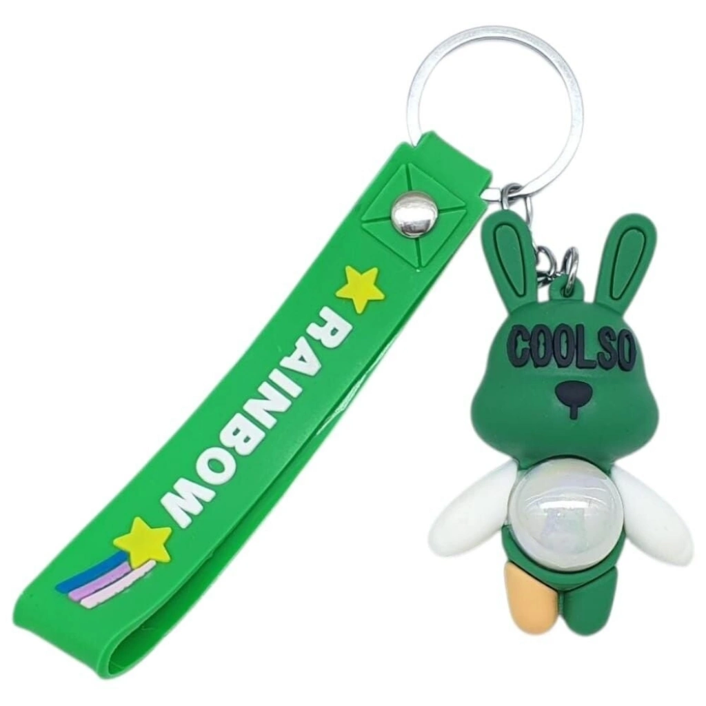 Figürlü ve Işıklı Silikon Anahtarlık - Tavşan - Yeşil