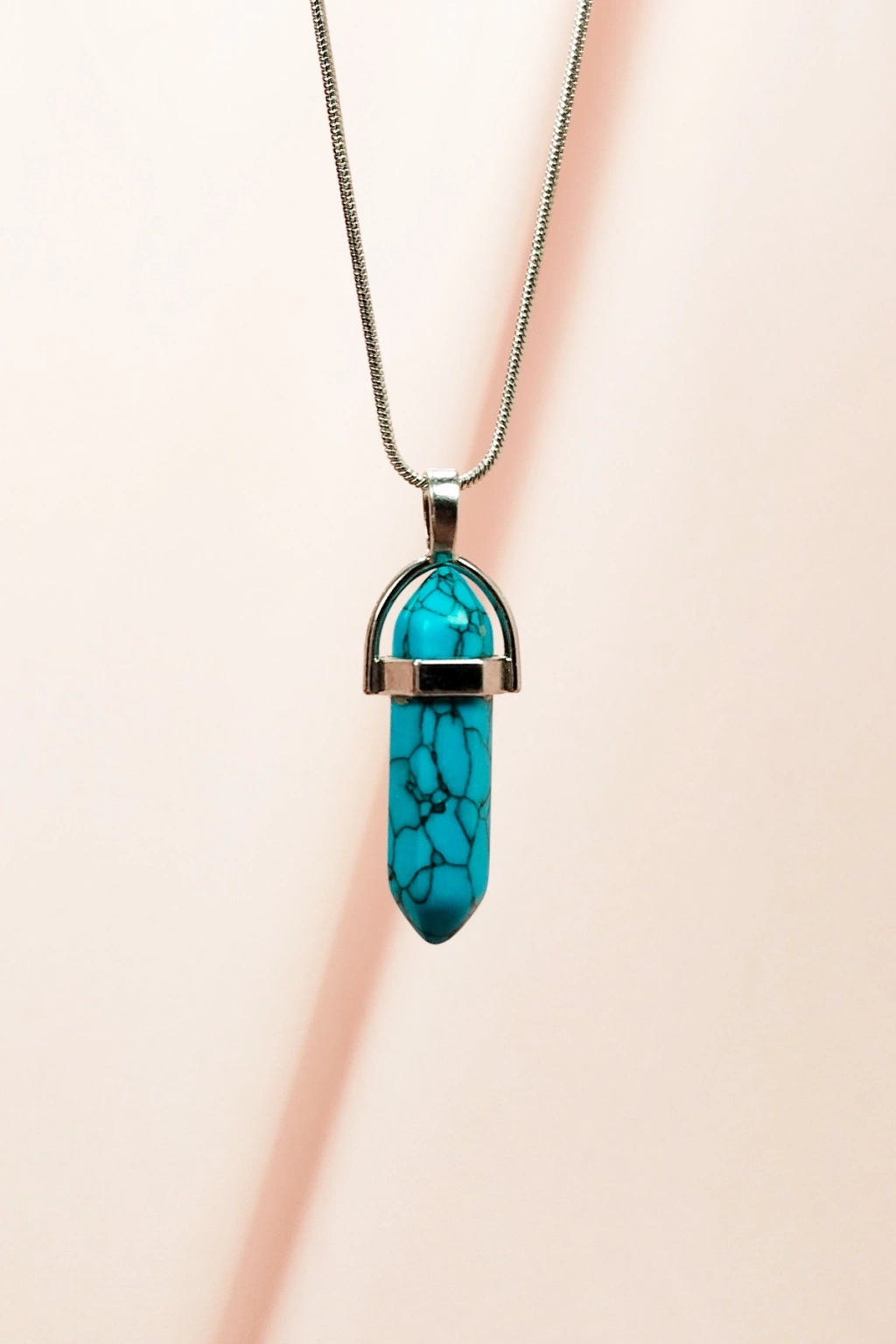 Firuze Doğal Taşı Zincirli El Yapımı Tasarımlı Kolye Uç: 3,5 cm Zincir: 20 cm Kutulu