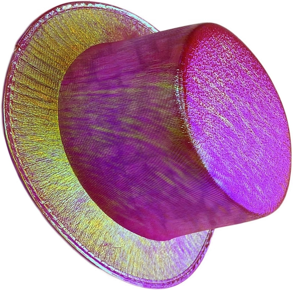 Fuşya Renk Işıltılı Hologram Kumaş Kaplama Fötr Silindir Şapka Yetişkin Boy