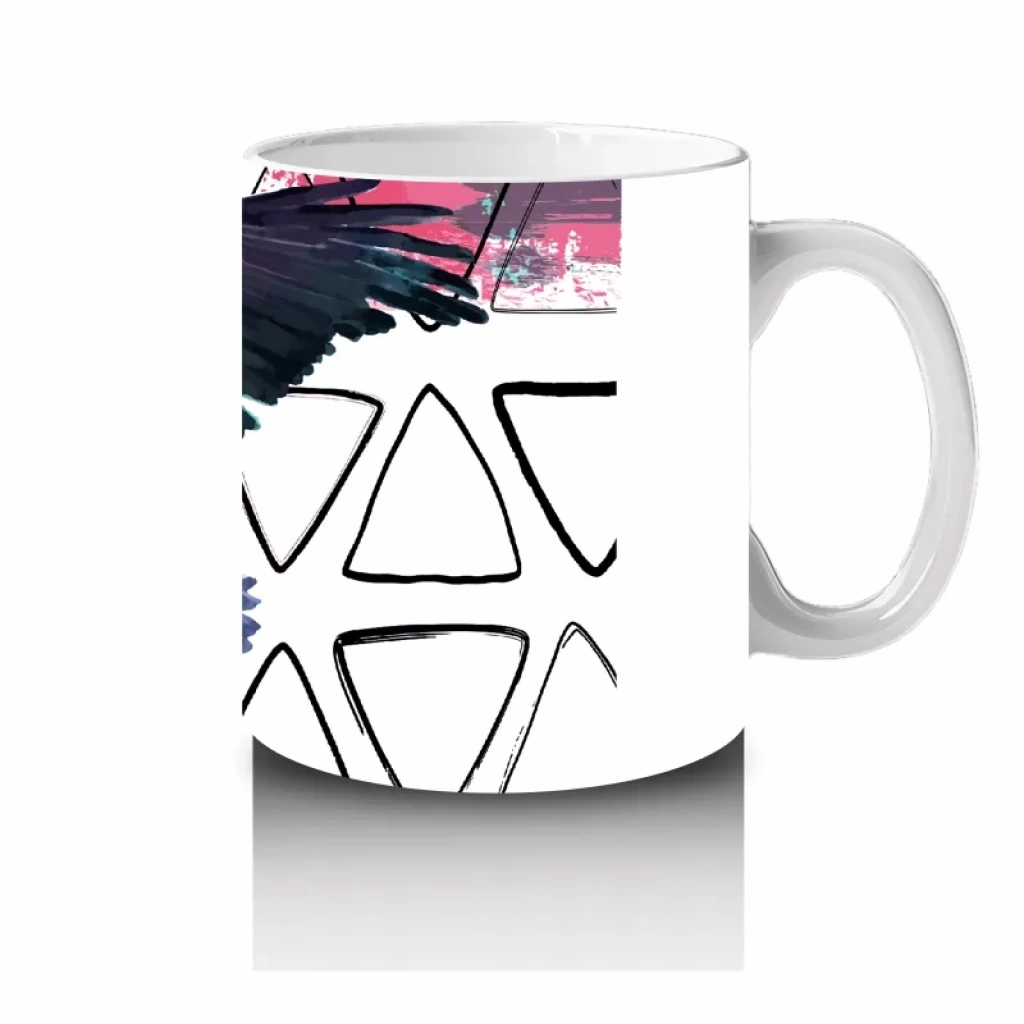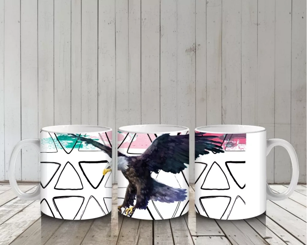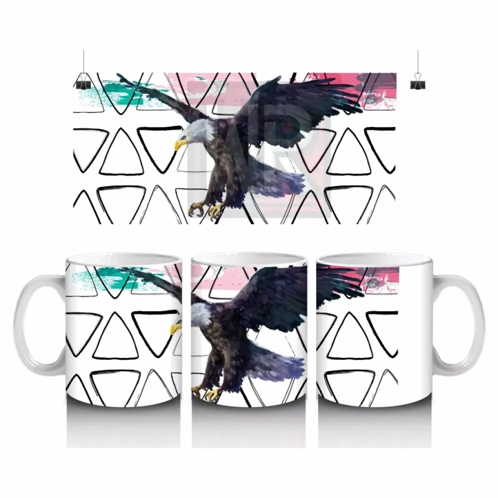 Geometrik Arka Plan Üzerinde Uçan Kartal İllüstrasyonu – Baskılı Kahve Kupası