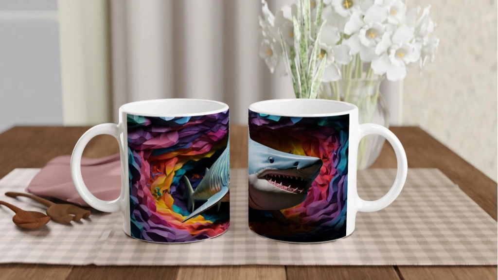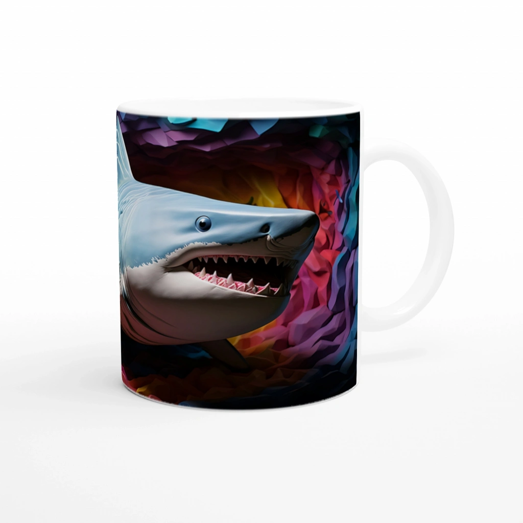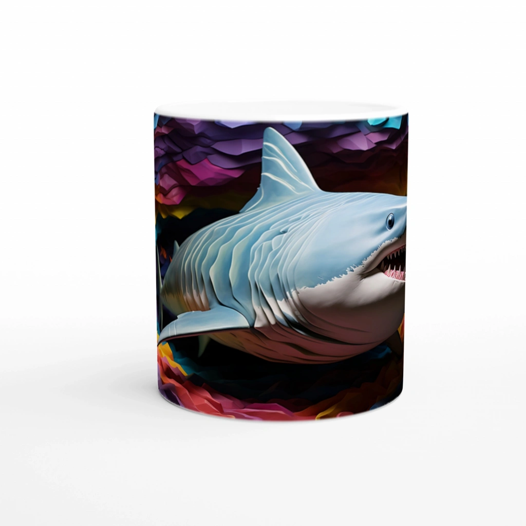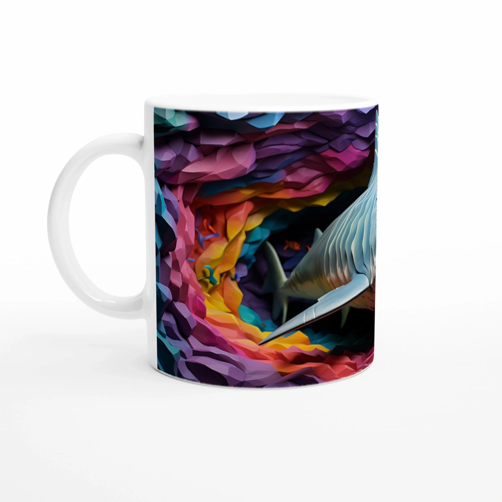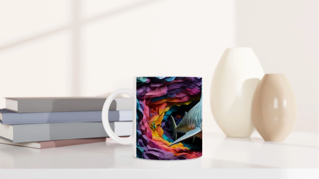Geometrik Doku ve Renk Patlamasıyla Köpekbalığı Su Altı Temalı Kupa Bardak