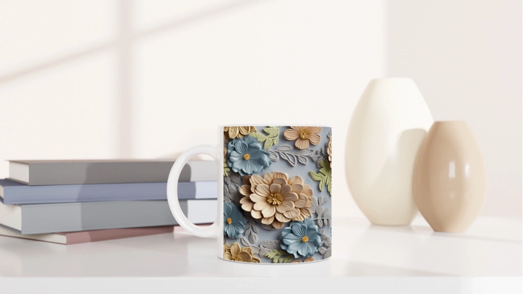 Gök Mavisi Çiçek Bahçesi Kupa Bardak, 3D dokulu detayları ve pastel renk harmonisiyle dikkat çeker. Günlük kullanım için şık bir tercih olurken aynı zamanda özel günler için zarif bir hediye seçeneği sunar.