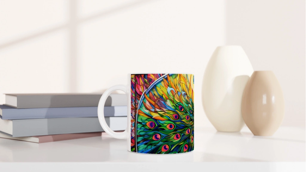 Gökkuşağı Kanatlı Tavus Kuşu Vitray Desenli Baskılı Kupa Bardak, her yudumda renklerin büyüsünü yaşatıyor. Parlak tonlarda tasarlanmış detaylı tüyler ve göz alıcı arka plan, bu kupayı sadece bir içecek kabı değil, aynı zamanda küçük bir sanat eseri haline getiriyor. Tavus kuşu baskılı kupa, doğayı ve estetiği sevenlere özel bir dokunuş sunuyor.