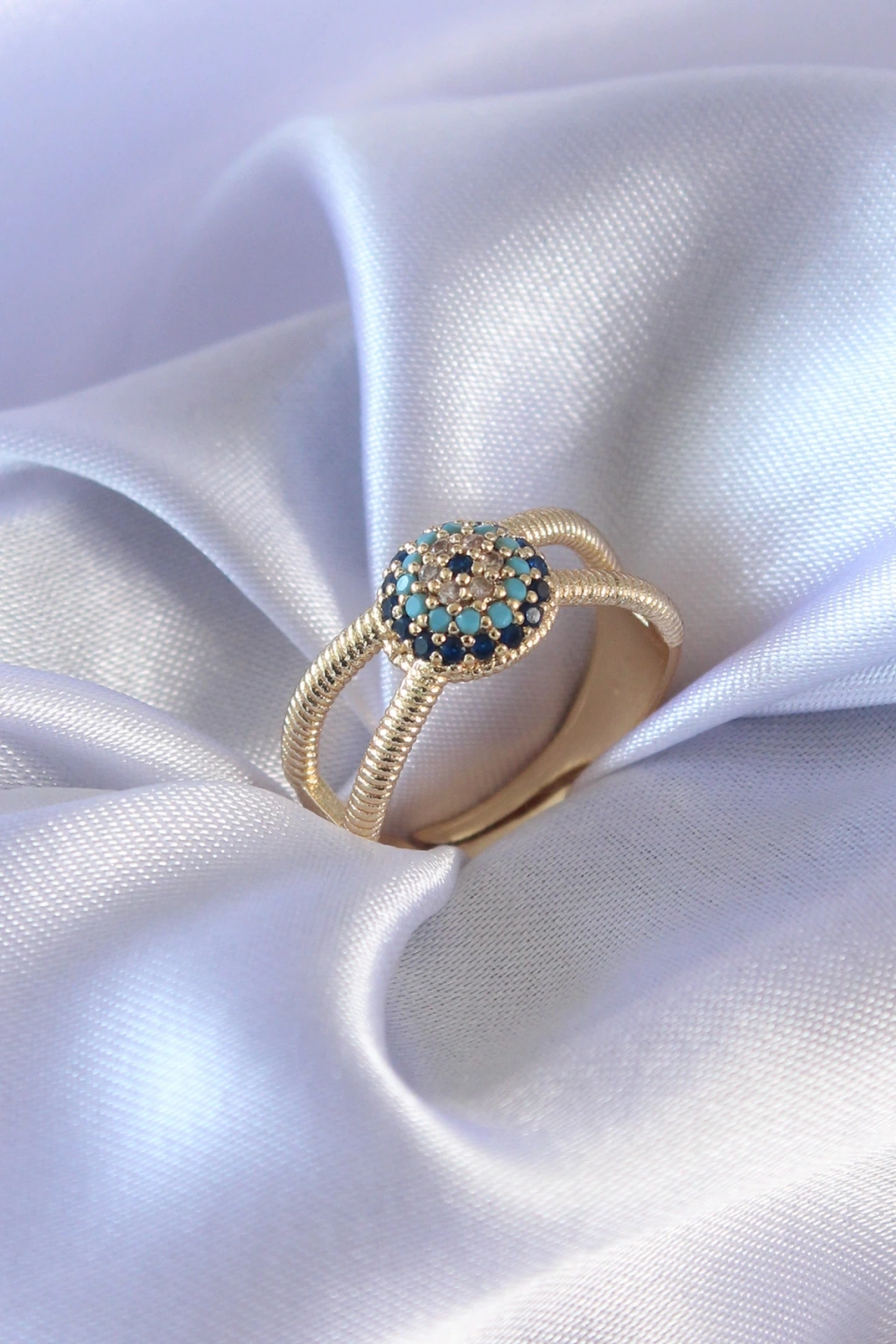 Gold Renk Nazar Boncuk Model Kadın Yüzük
