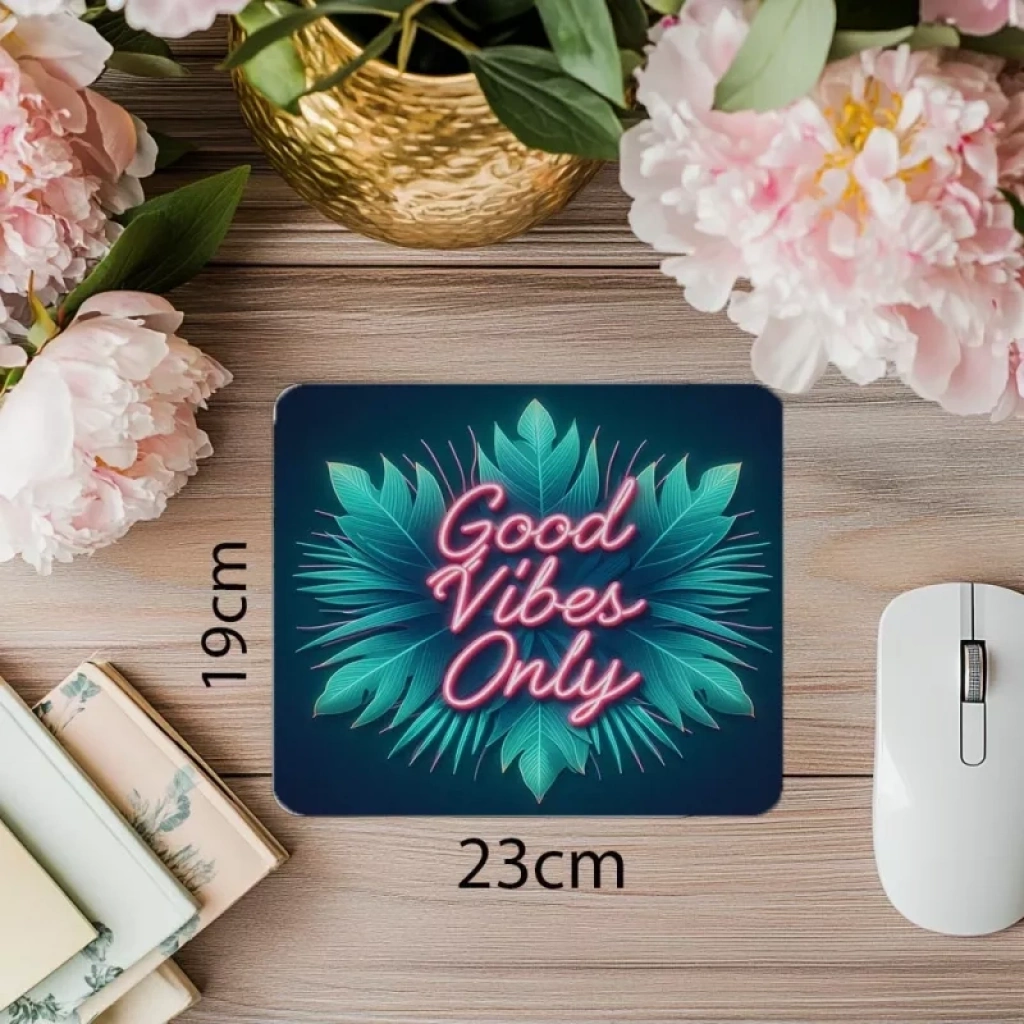 Tropikal neon renklerle “Good Vibes Only” mesajını vurgulayan bu mousepad, canlı ve pozitif bir çalışma atmosferi sunar.