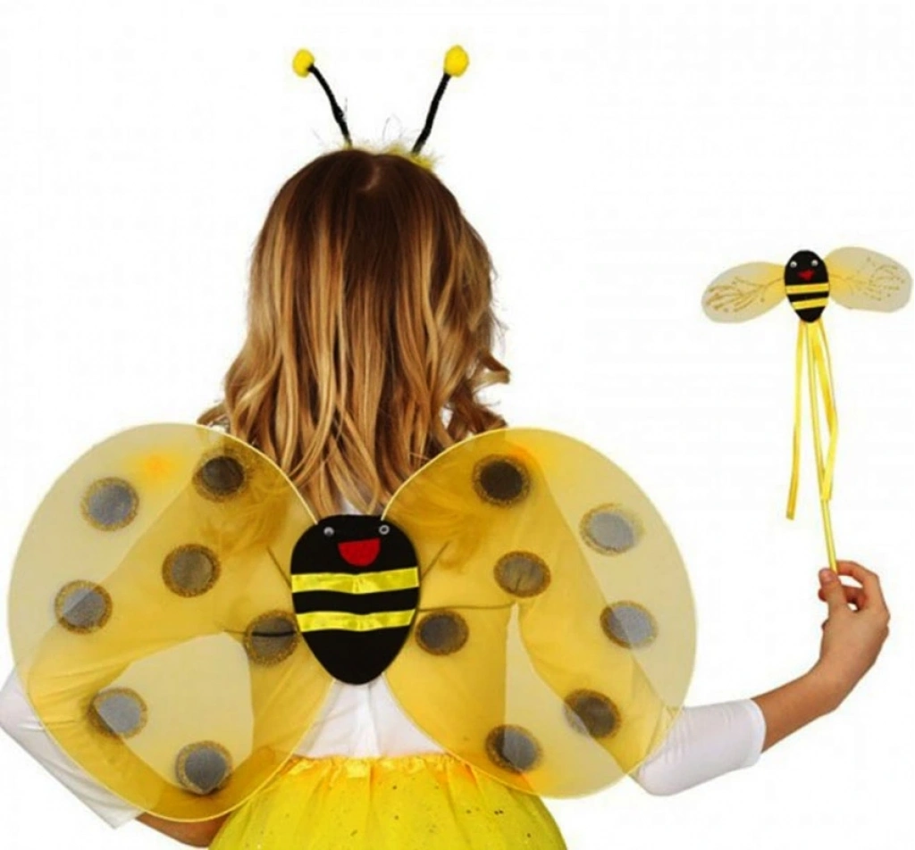Gösteri Arı Kanadı Kostüm Seti – Çocuklar İçin Kanat, Taç Ve Asa Aksesuarı