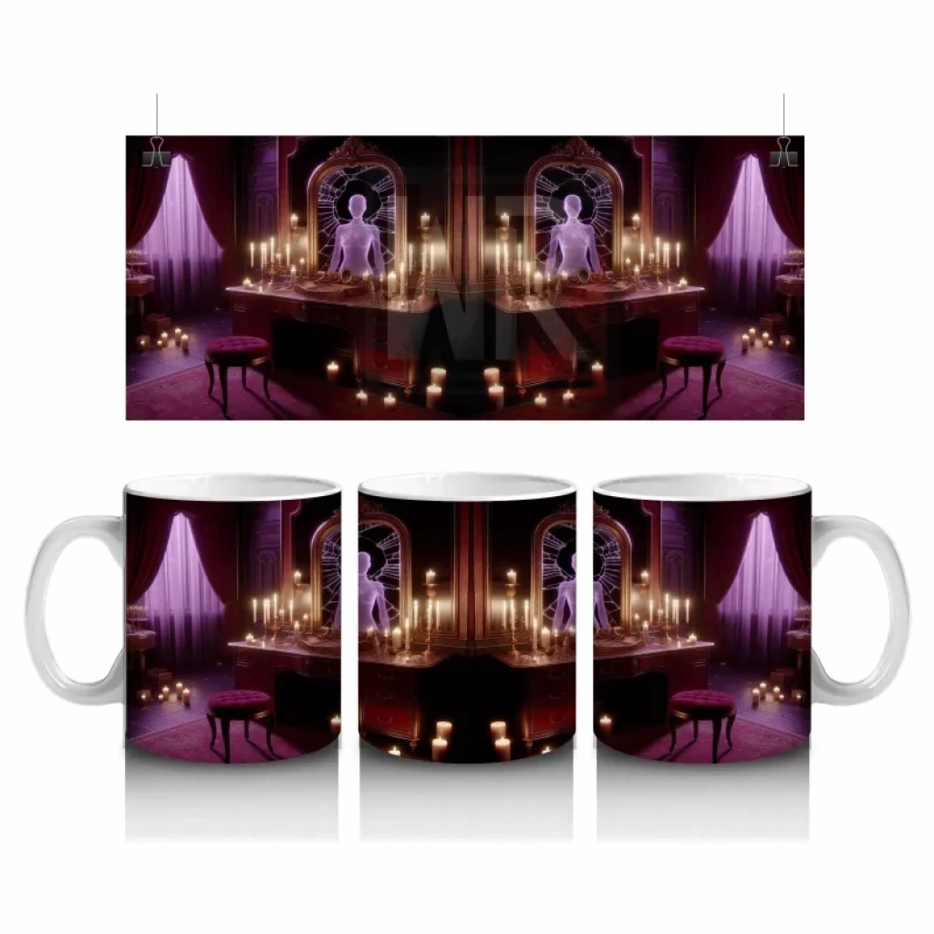 Gotik şamdanlı saray salonunda cadı ayini temalı bu kupa bardak, Cadılar Bayramı’na mistik ve etkileyici bir atmosfer katar.