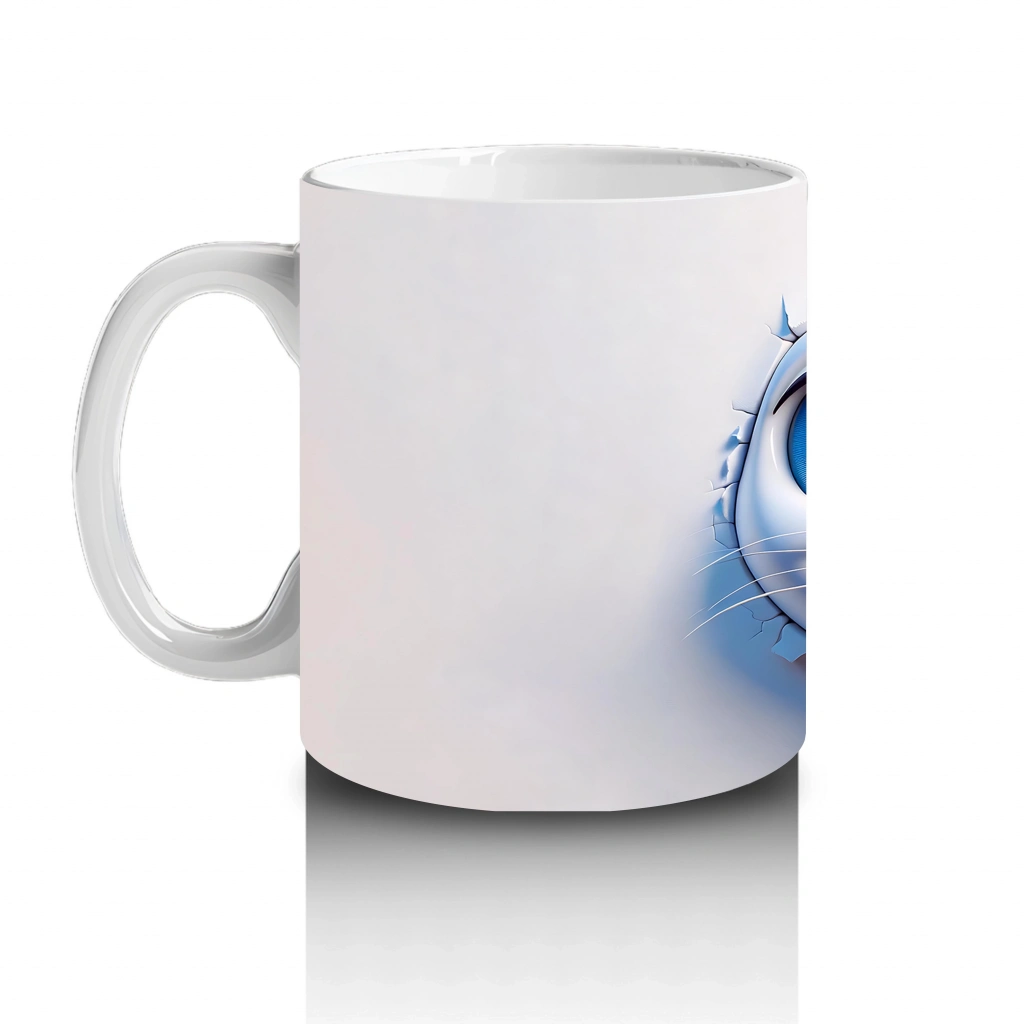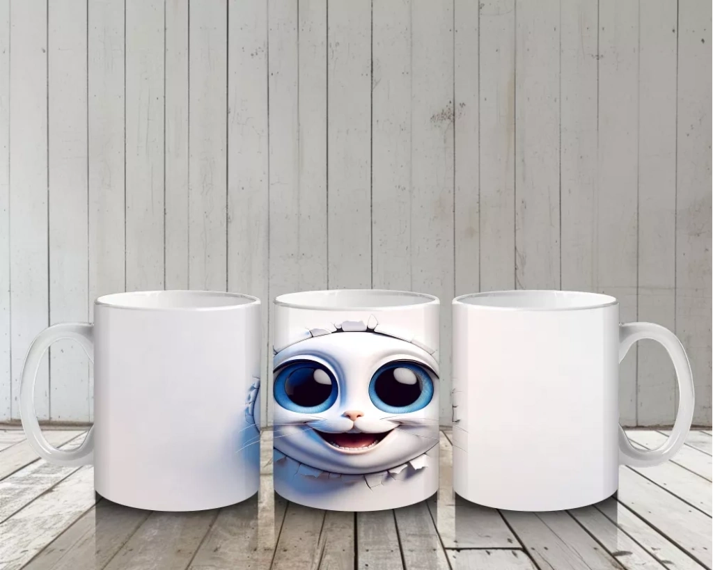 Gözleri Kocaman Sevimli Beyaz Maskot Yüzü – Baskılı Kahve Kupası