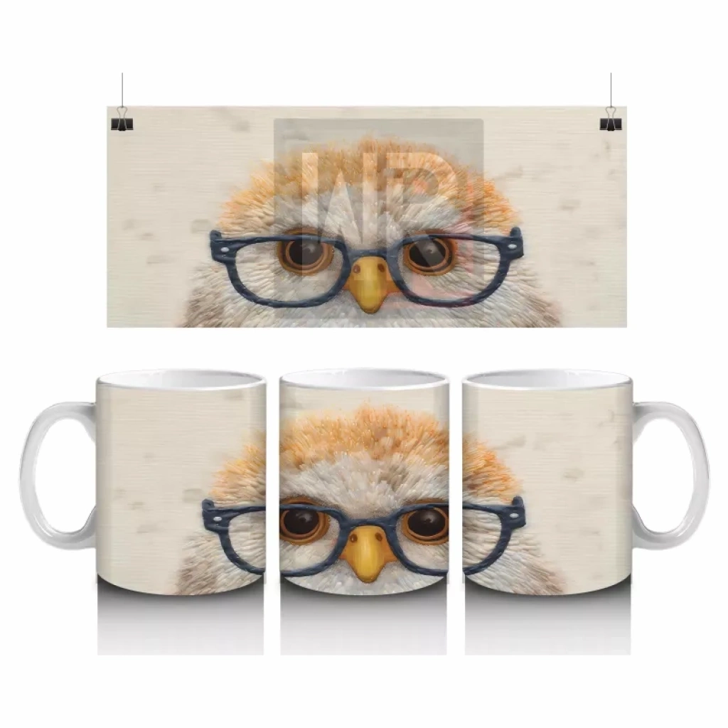 Gözlüklü Sevimli Baykuş Portresi – Baskılı Kahve Kupası