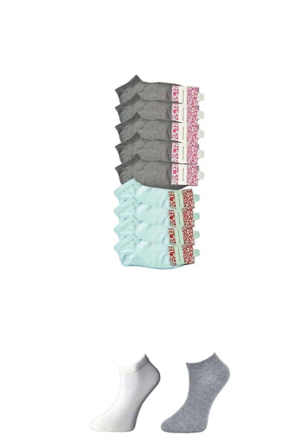 Gri ve Beyaz Kadın Bilek Çorap 9 çift