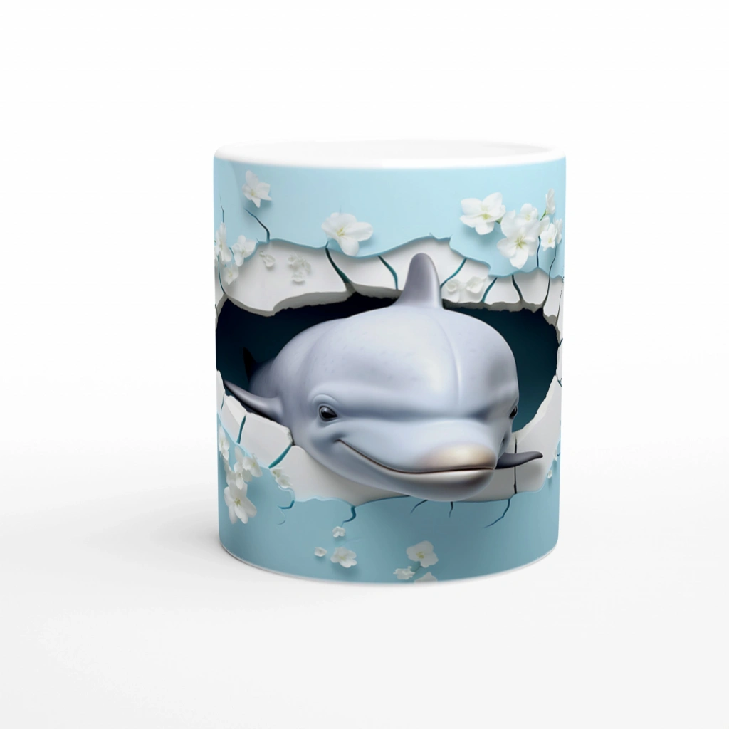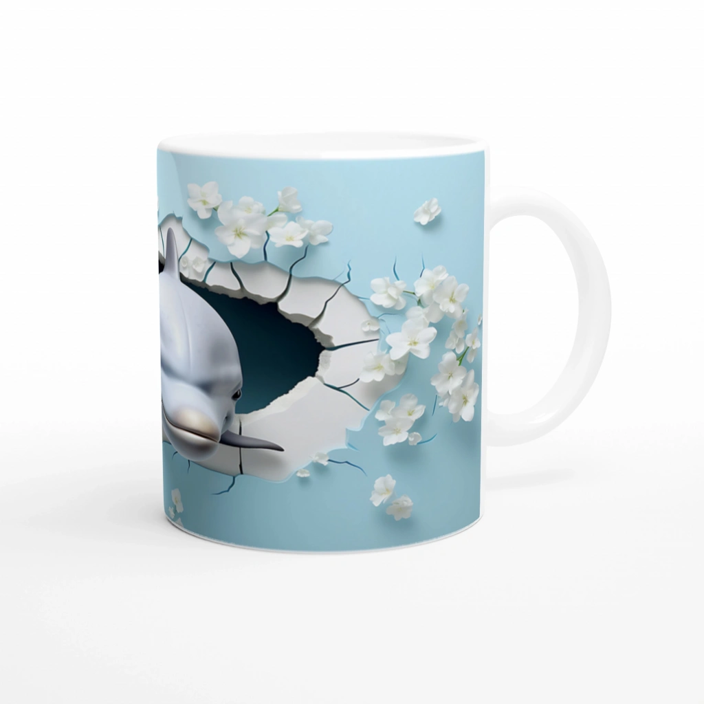 Gülen Yunus ve Çiçeklerle Delinen Duvar Su Altı Temalı Kupa Bardak