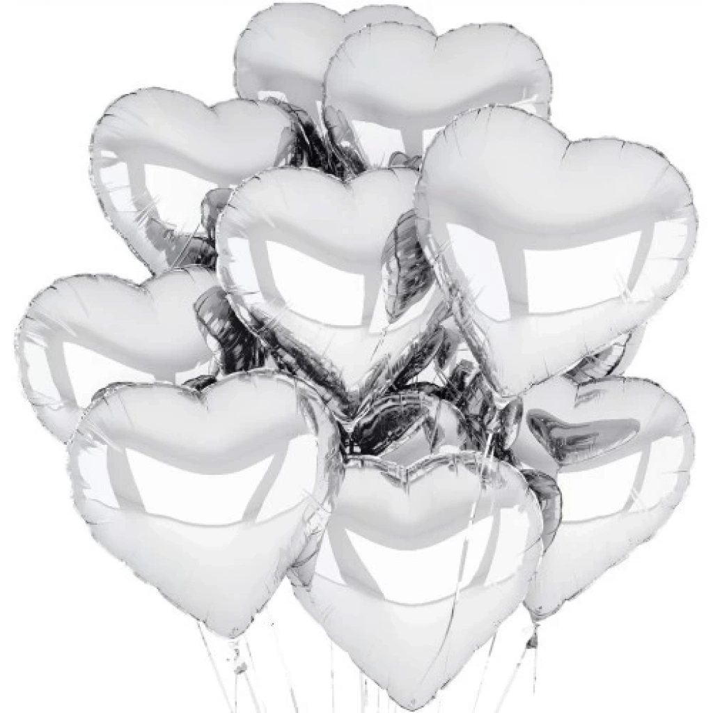 Gümüş Kalp Şekilli Uçan Balon Folyo 10 Adet