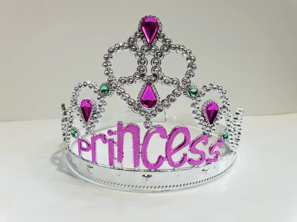 Gümüş Renk Prenses Yazılı Parti Tacı 60 Cm