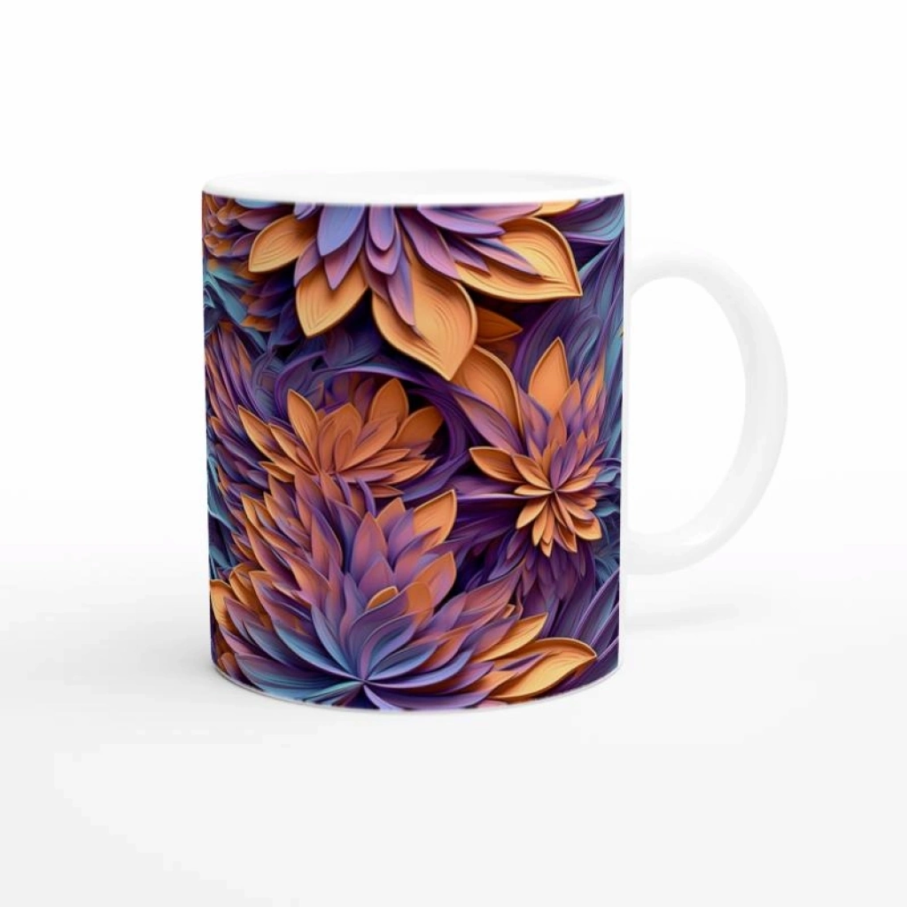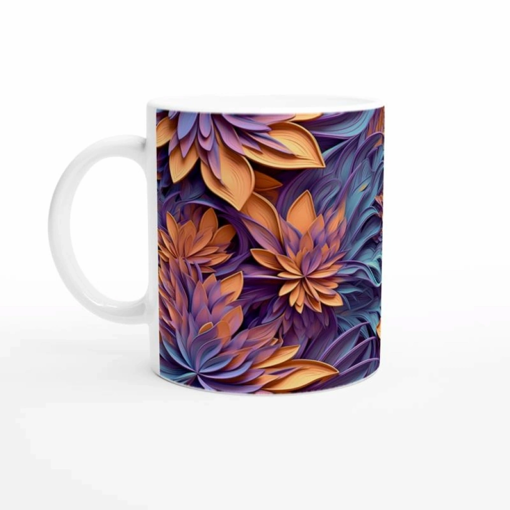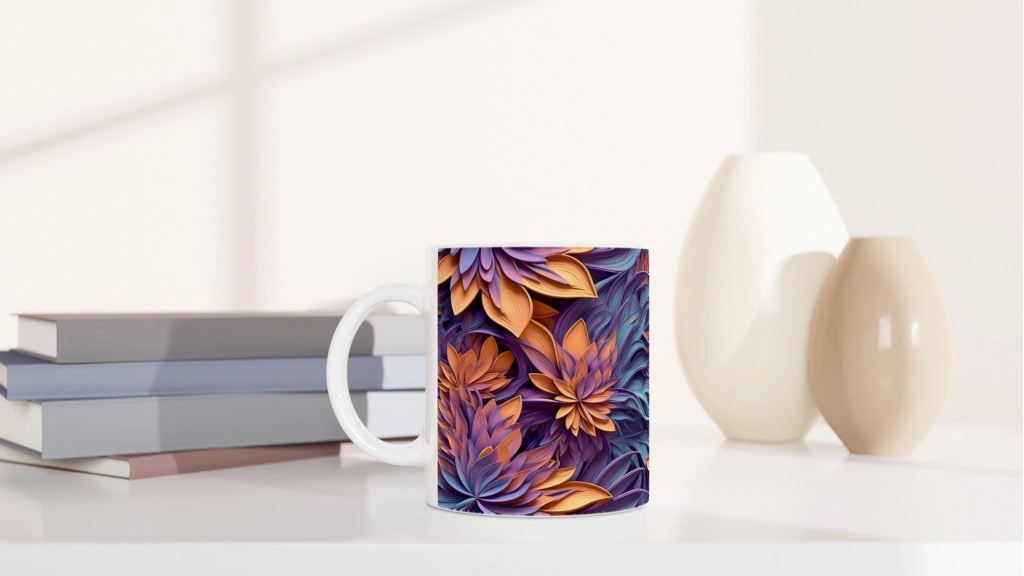 Gün Batımı Rüyası Çiçekli Kupa Bardak, 3D detaylarıyla sıcak ve dinamik bir atmosfer yaratırken içecek keyfinize sanatsal bir dokunuş katıyor.