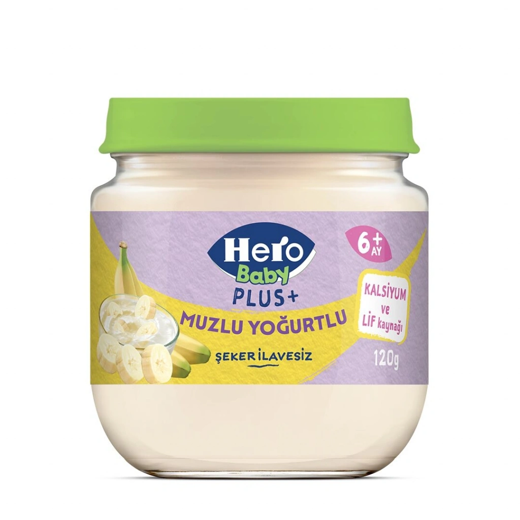 • Bebeğinizin sevdiği meyveler ile lezzetlendirilen Hero Baby Plus Muzlu Yoğurtlu kavanoz mamaları, kalsiyum ve lif kaynağıdır. Bebeğinize 6.aydan itibaren yedirebilirsiniz.