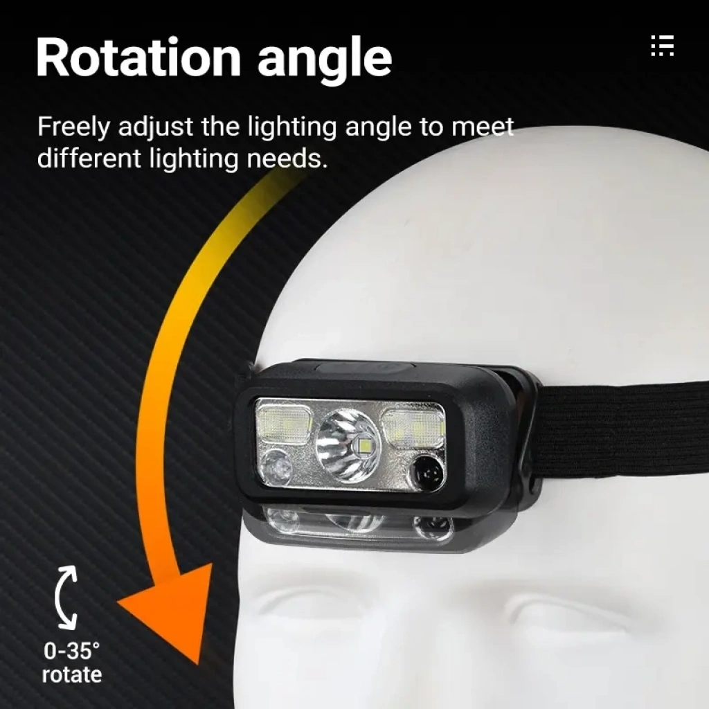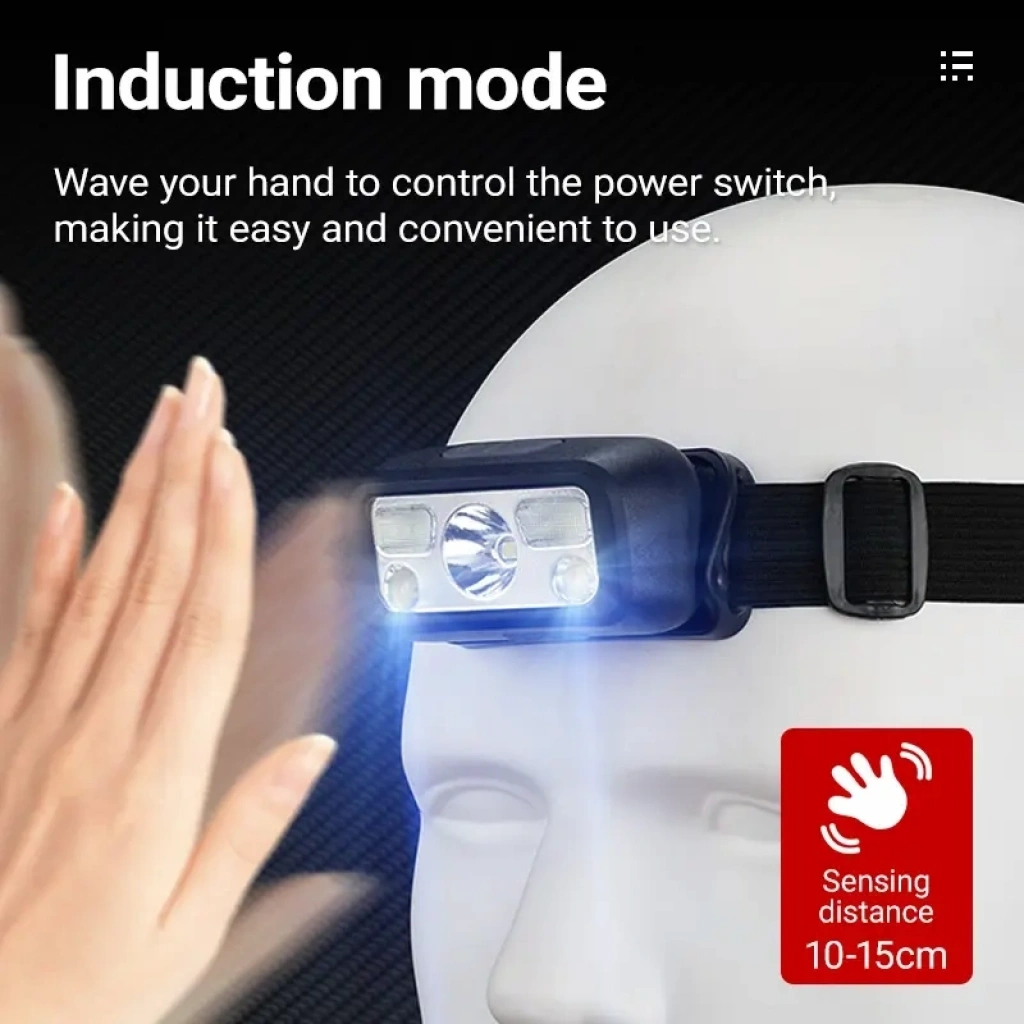 Hs-43 Sensörlü Şarjlı Type-c Çok Amaçlı Kırmızı Işıklı Kafa Lambası