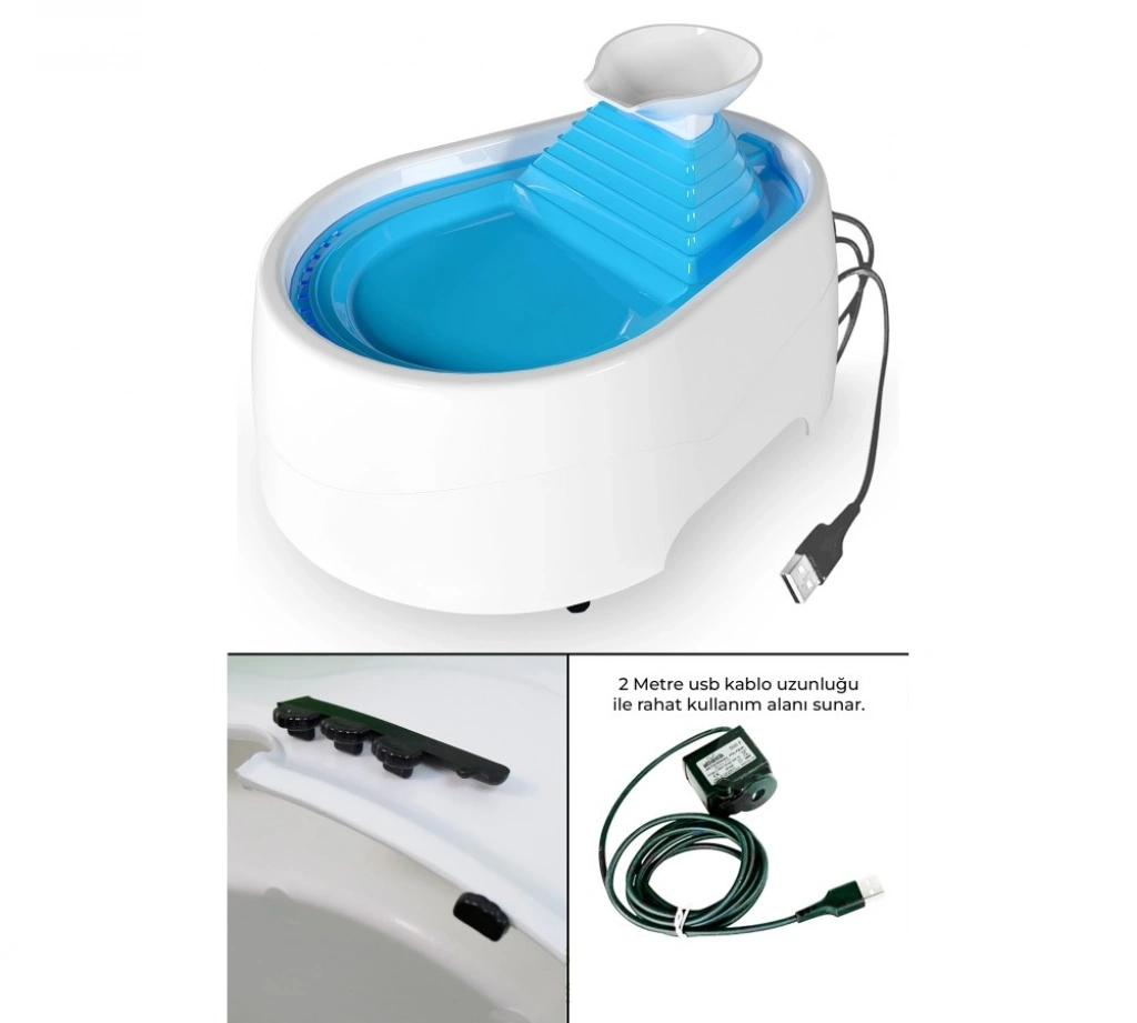 Cado Pet Kedi Köpek Su Pınarı Şelale 2 Litre - 5 volt ( usb'li ) Mavi - ST00232-MV - - CaDoPet Su Pınarı 2.0 Litre standart usb soketli 5 volt adaptör (telefon şarj cihazı vb.) ile uyumludur. Kutu içerisinde adaptör bulunmamaktadır, dilerseniz adapt
