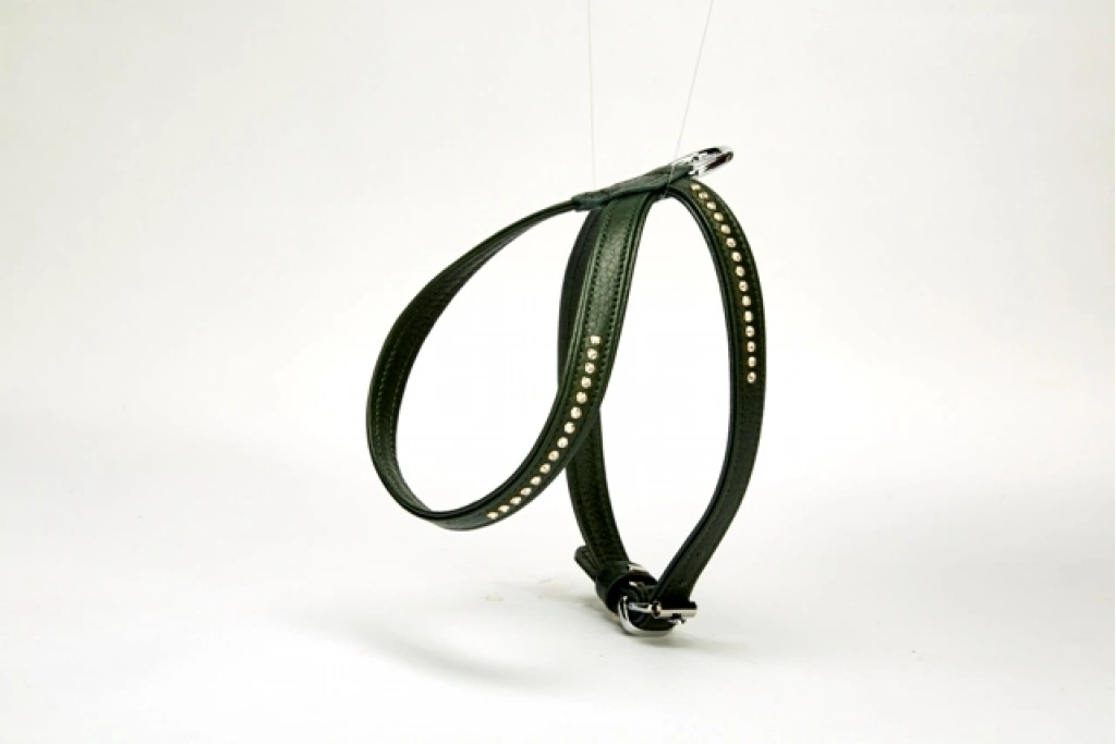 Doggie Flotter Swarovski Taşlı Deri Köpek Göğüs Tasması 1,2 x 25-35 cm Yeşil
