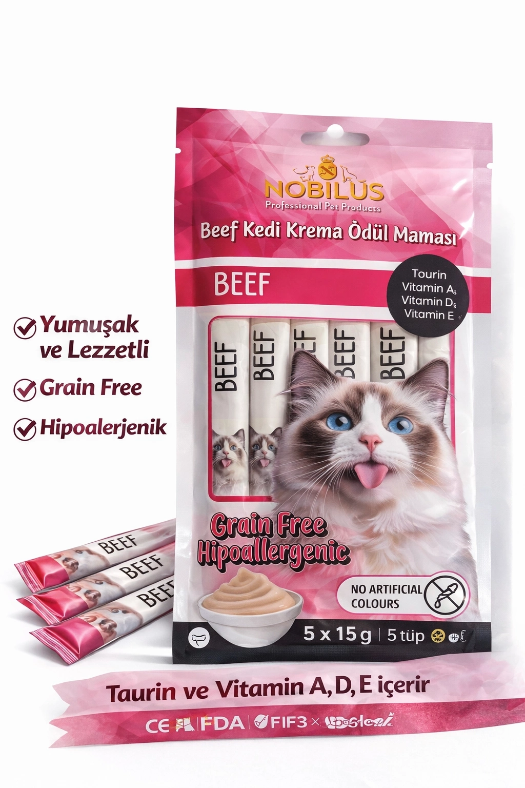 Nobilus Biftekli Kedi Krema Ödül Maması 5 x 15 gr - 13460-2 - -