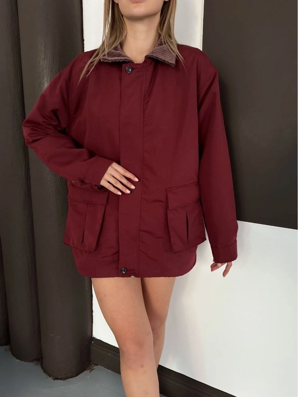 Astarlı yaka detaylı artos ceket bordo st2651019