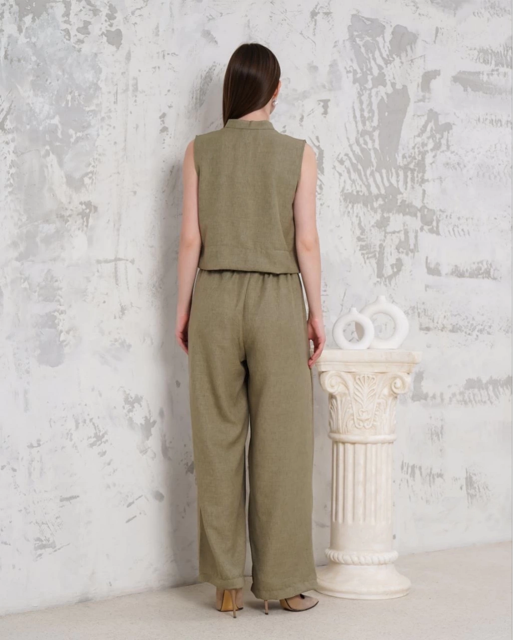 - Yelek ve pantolonun uyumlu kombinasyonu