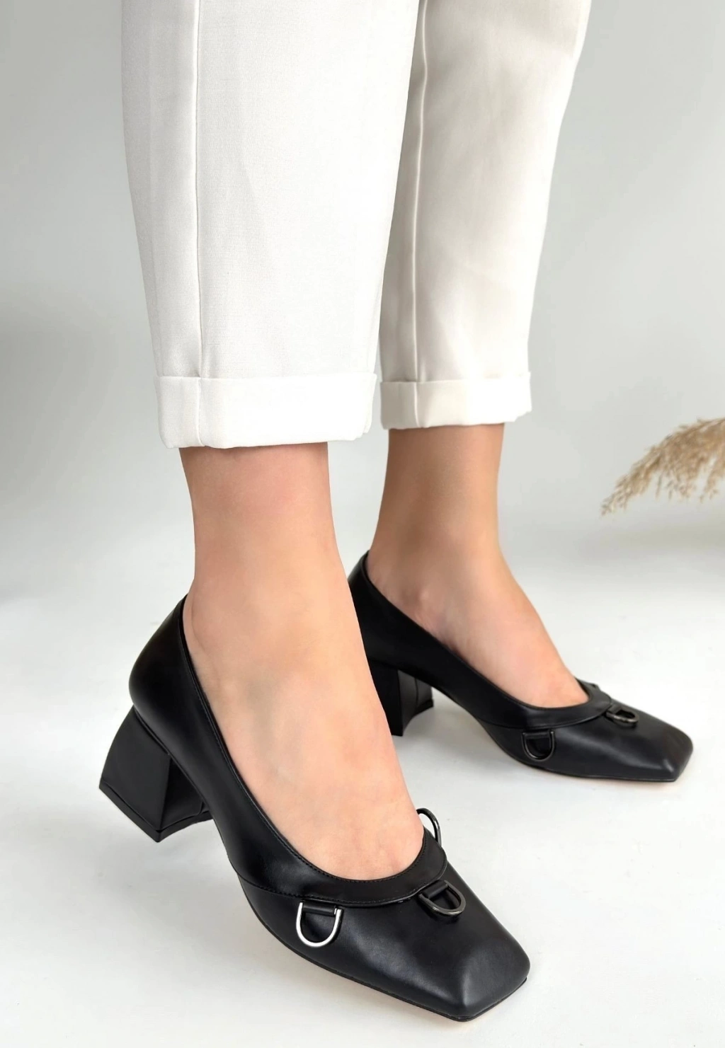 • Cande Siyah Cilt Topuklu Ayakkabı