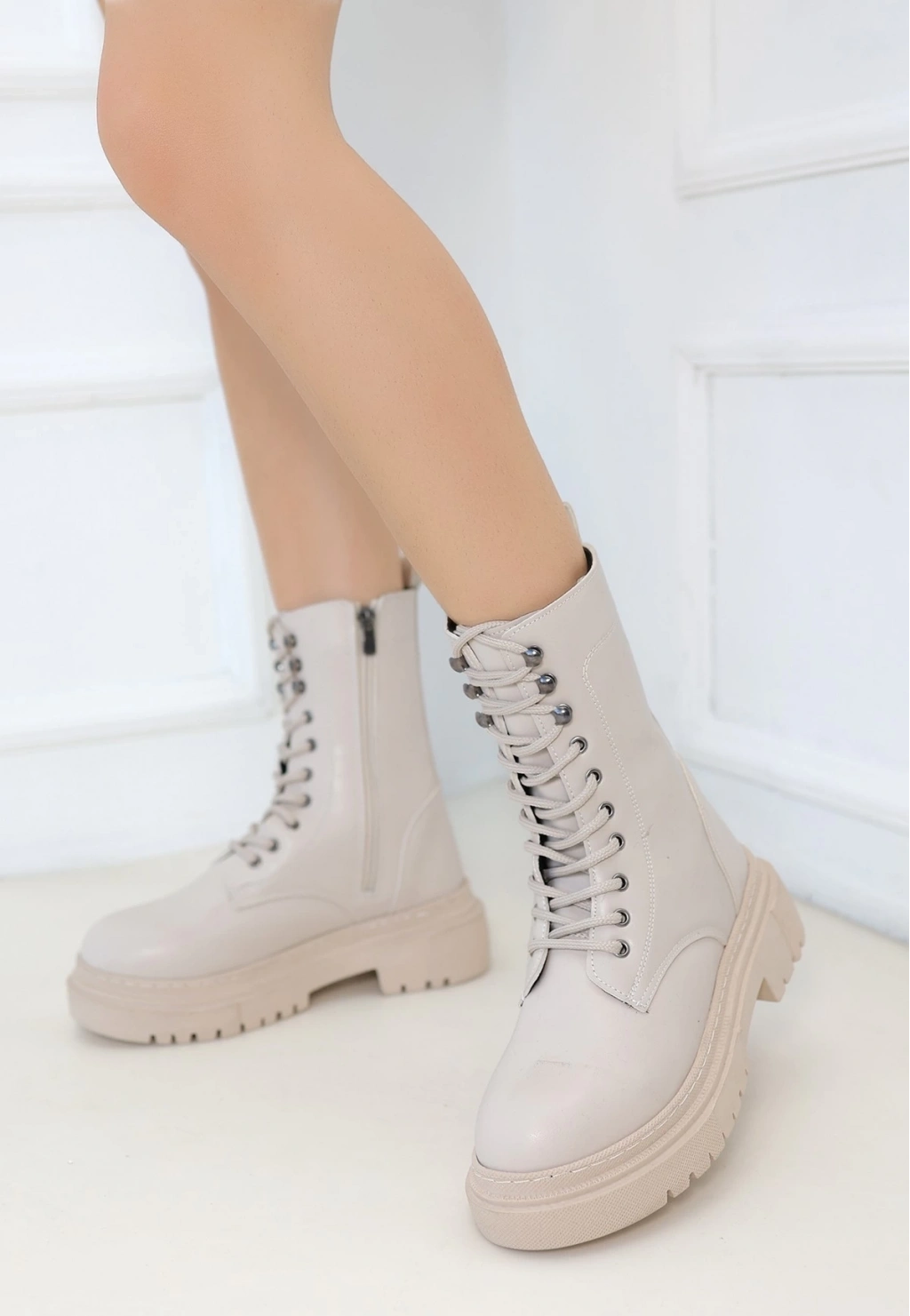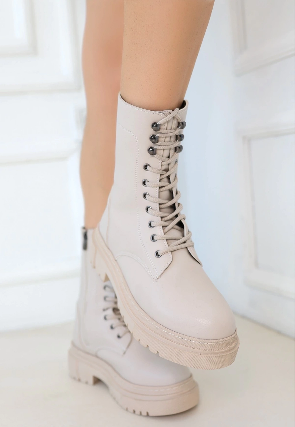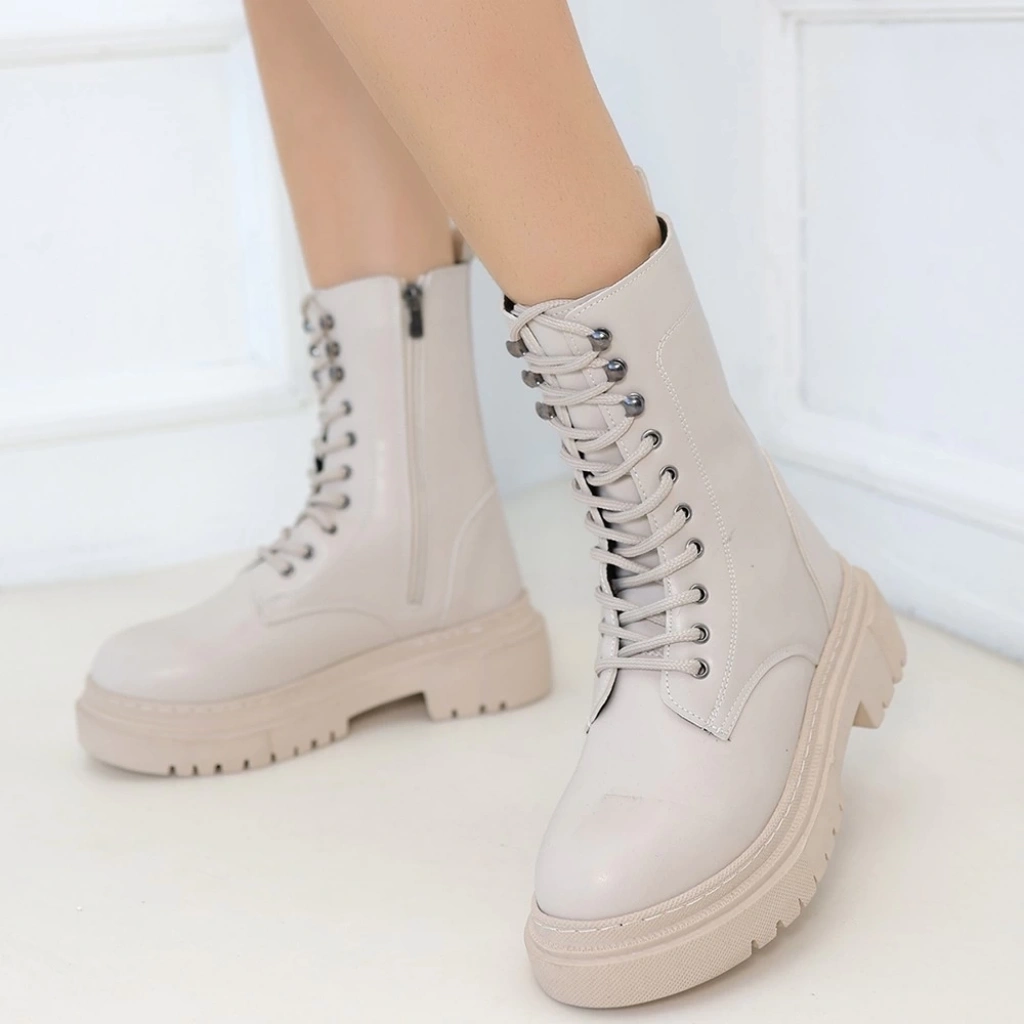 Caxa Bej Cilt Bağcıklı Bot
