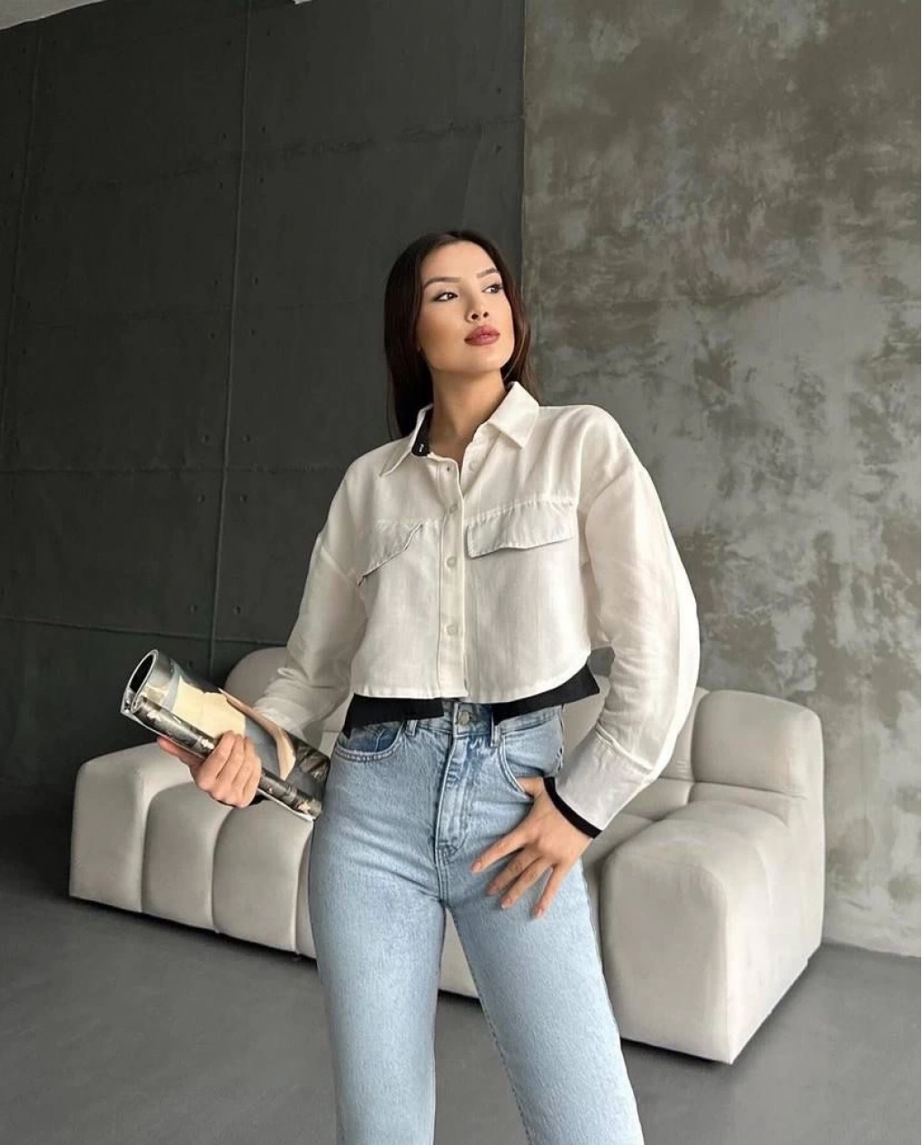 Çift renkli kısa gömlek s4021 ile tarzınızı yansıtın, şıklık ve rahatlığı bir arada buluşturun!