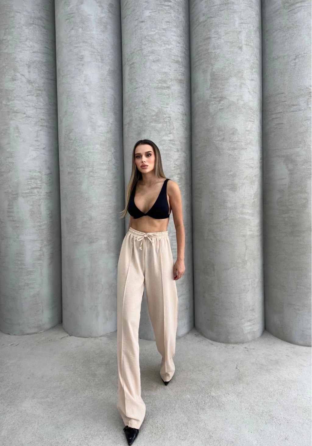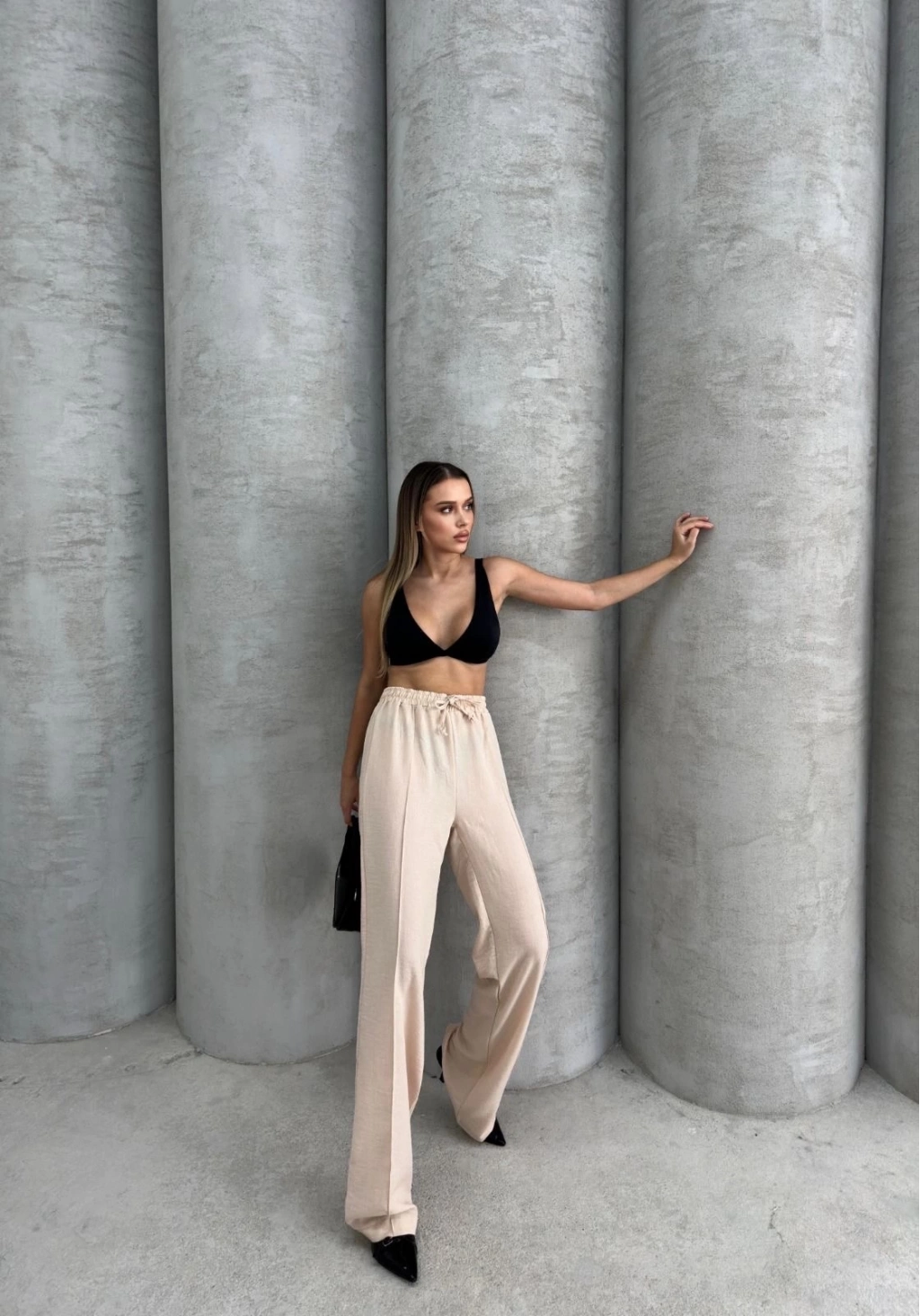 ÇOK SATAN marka çımalı keten pantolon, şıklığı ve rahatlığı bir arada sunar.