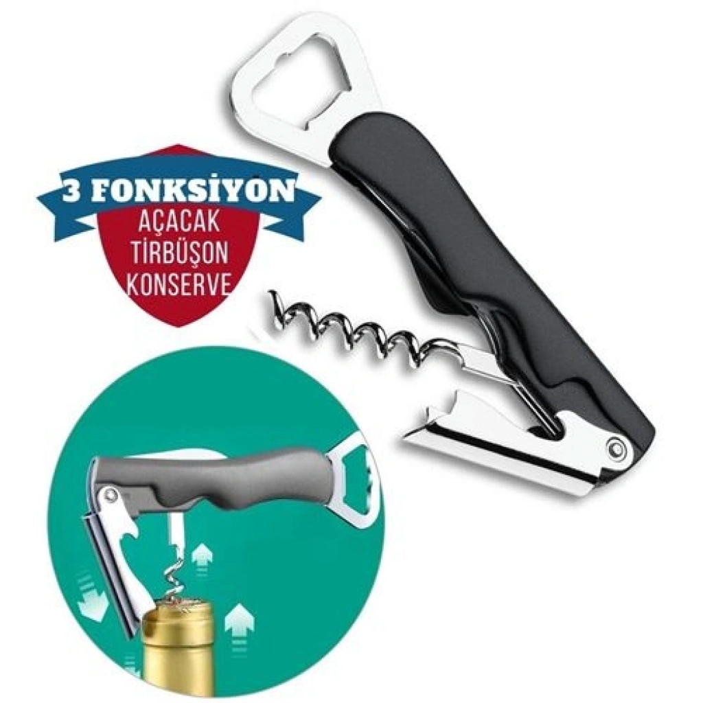 Konserve, şişe açacağı ve tirbüşon içerir