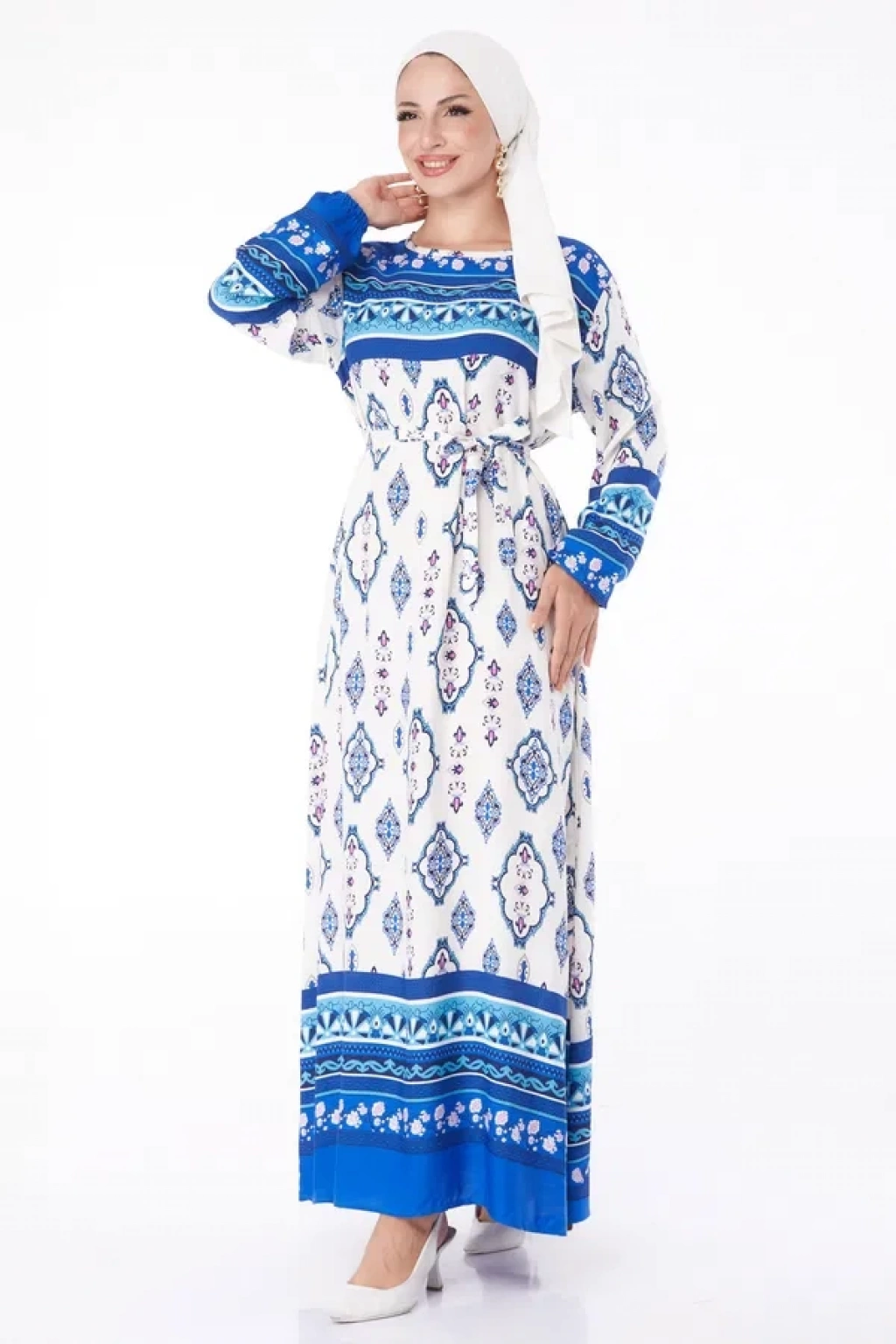 Düz Bisiklet Yaka Kadın Mavi Etnik Desenli Elbise, ÇOK SATAN marka kadın giyim koleksiyonunun şık ve rahat parçalarından biridir.