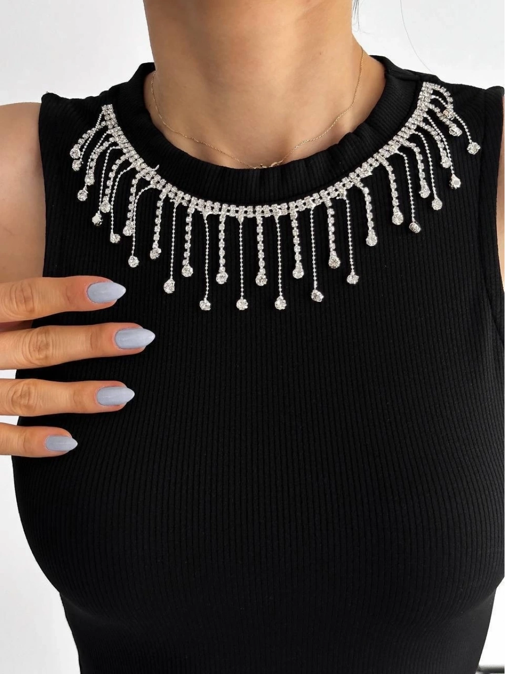 fitilli kaşkorse yakası zincirli atlet siyah