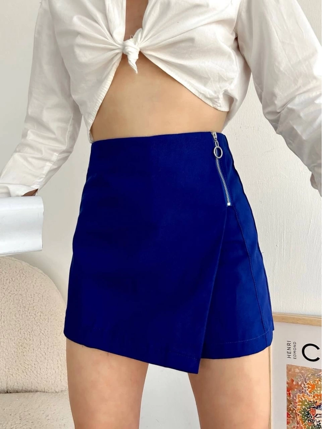 Gabardin fermuarlı şort etek, stilinizi tamamlayacak şık bir parçadır.