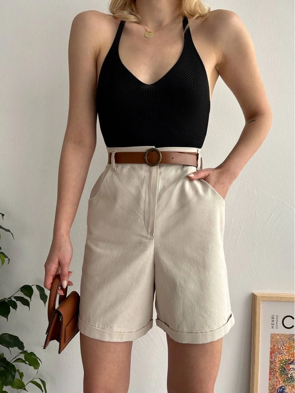 Sandaletlerle ya da spor ayakkabılarla rahatlıkla kombinlenebilen bu şort, şıklığına önem veren kadınların vazgeçilmezi olmaya aday.