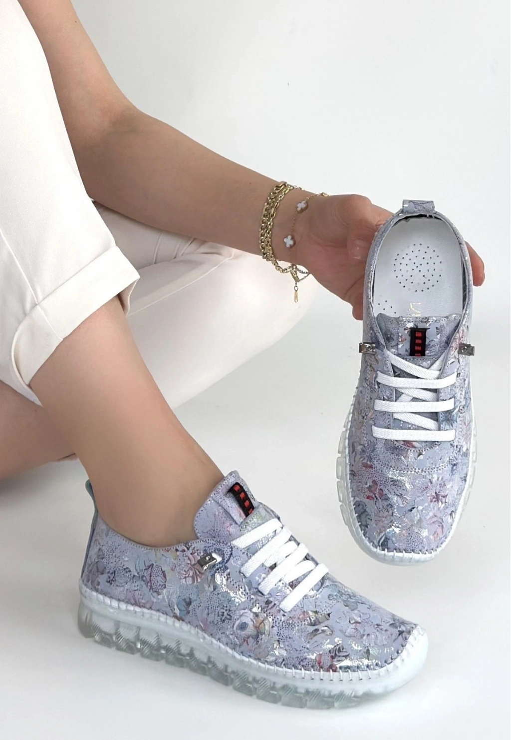 Kinte Lila Desenli Deri Bağcıklı Spor Ayakkabı
