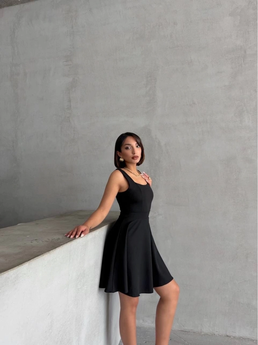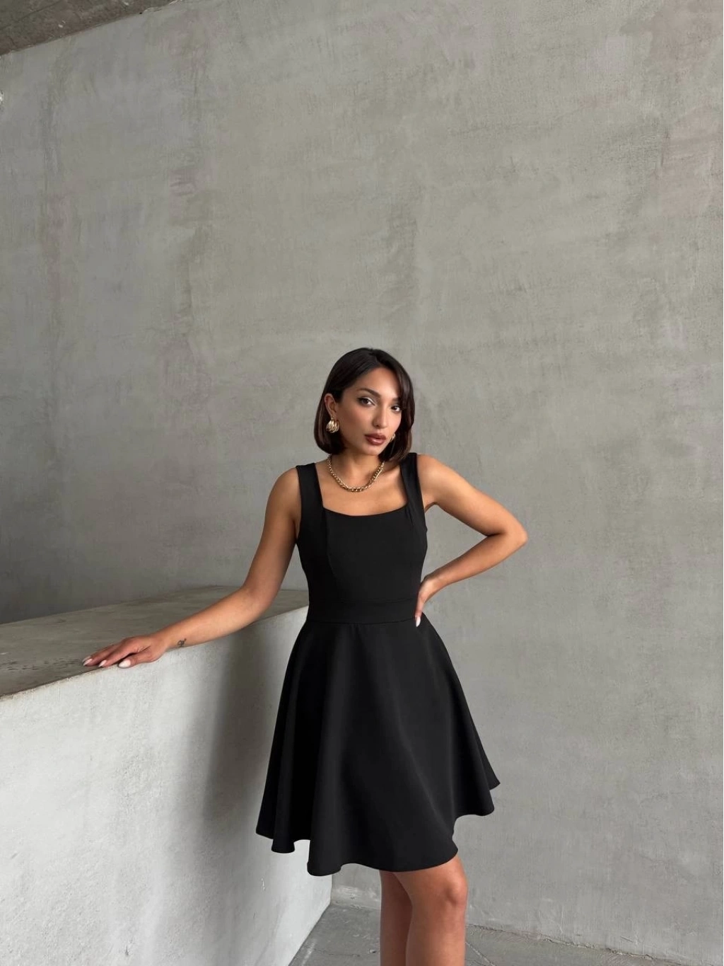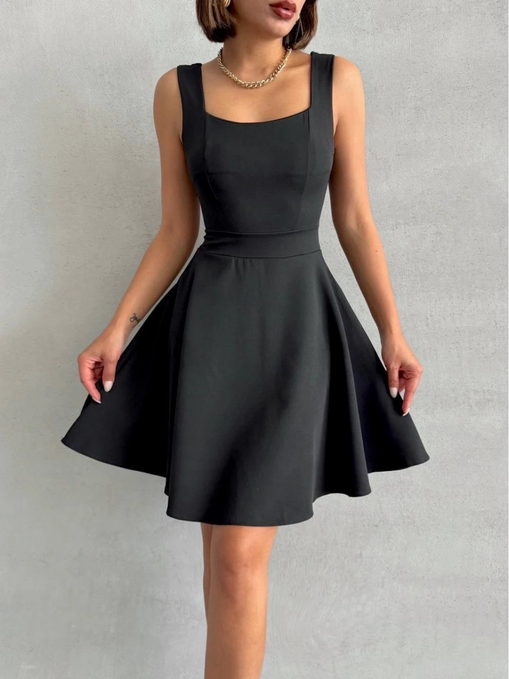 Kadın kare yaka kısa elbise s251188