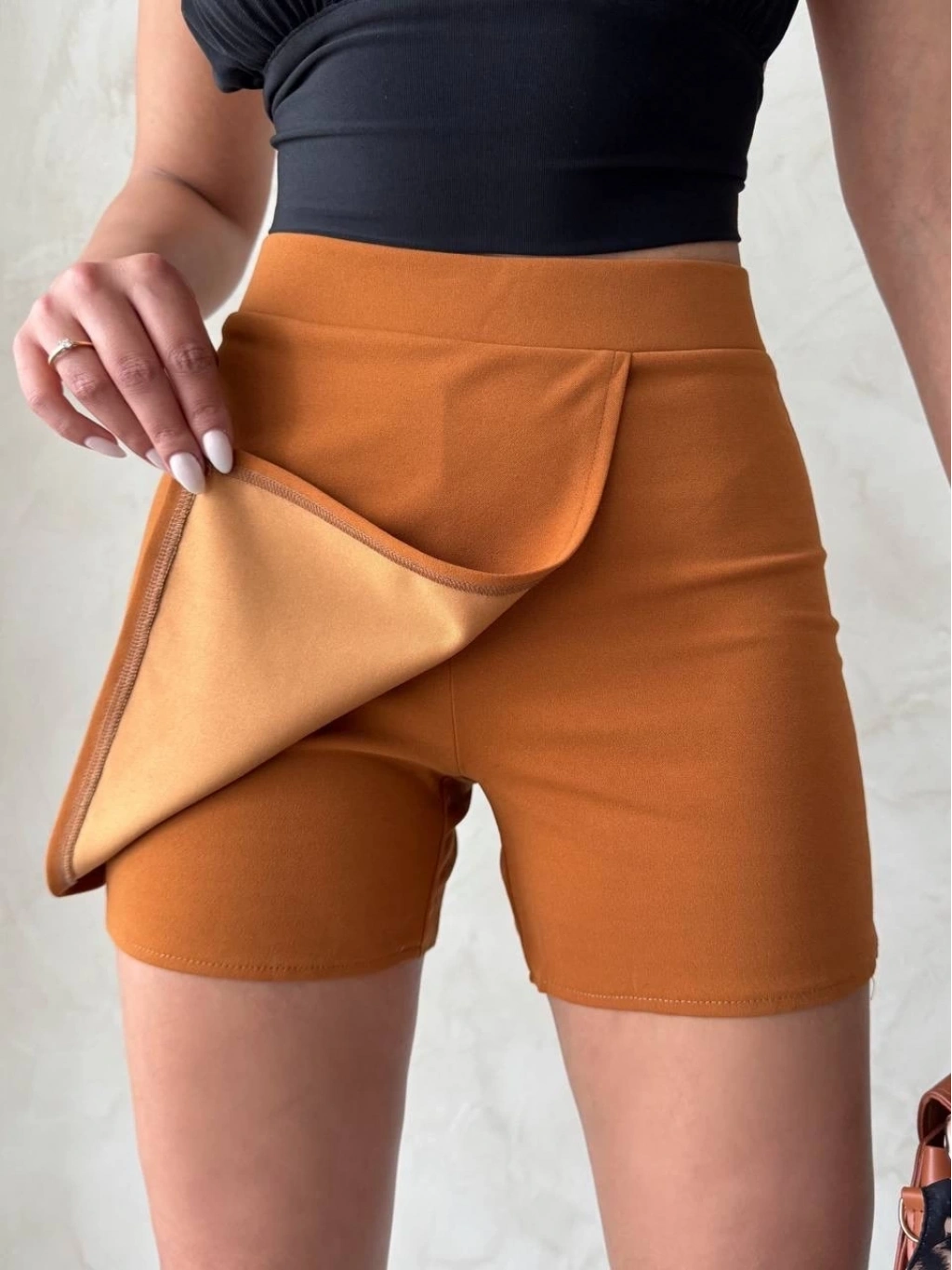 Kapaklı şort etek camel s208