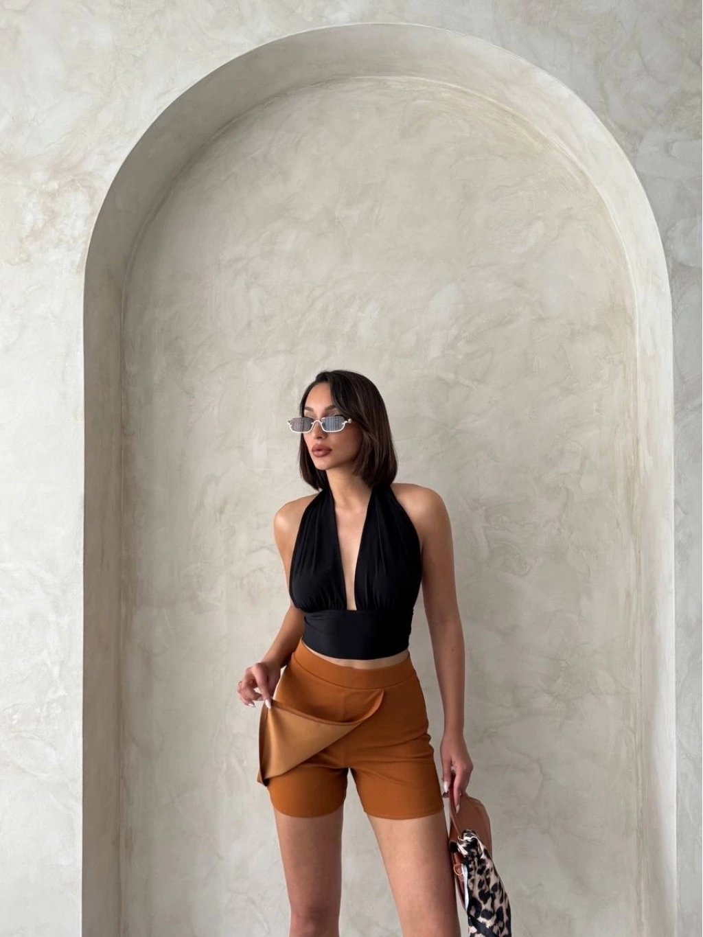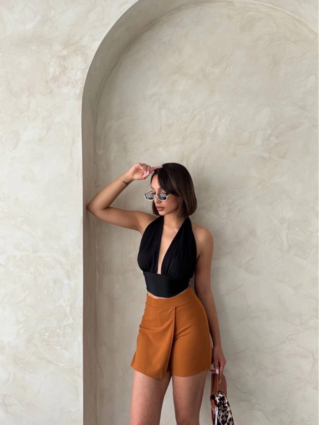 Kombinlerinize kolayca uyum sağlayacak olan Kapaklı Şort Etek Camel S208, gardırobunuzun vazgeçilmezi olmaya aday.