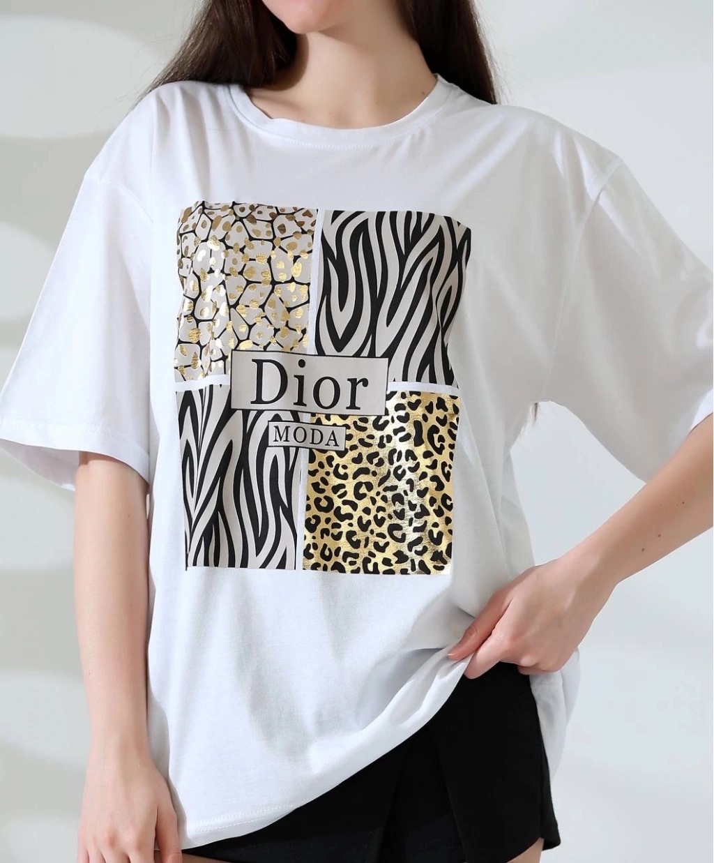 sının şık ve rahat tasarıma sahip karma desenli oversize tişörtü, şıklığı ve konforu bir arada sunar.