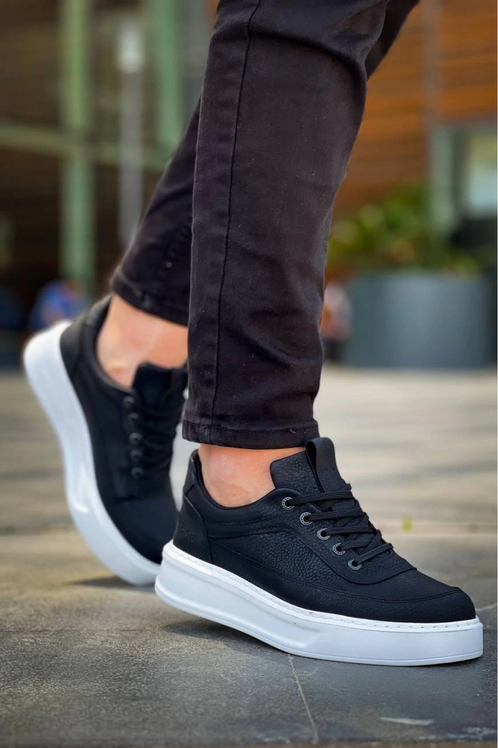 KB-006 Siyah Cilt Yüksek Taban Bağcıklı Günlük Erkek Ayakkabı