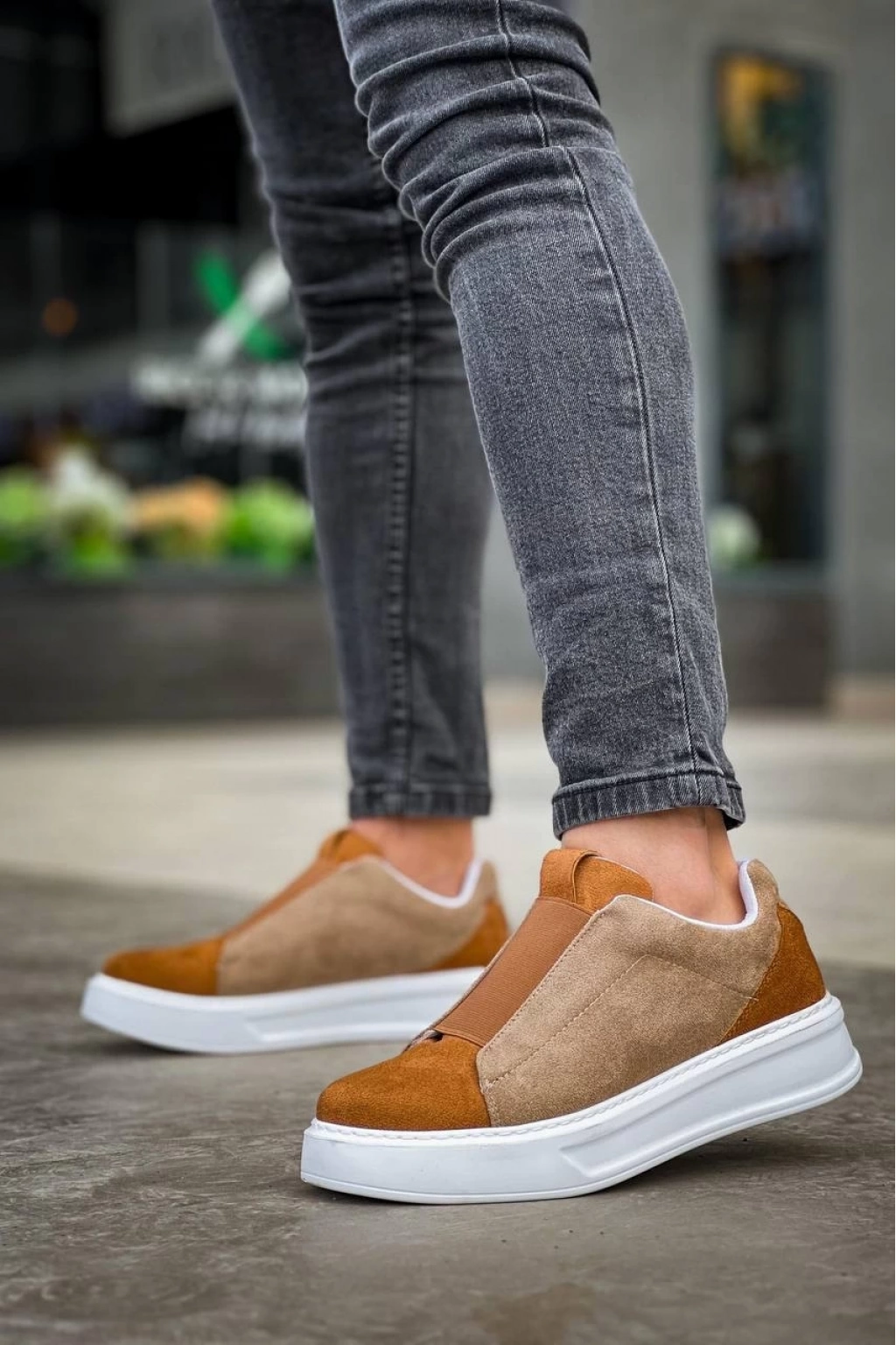 KB-007 Vizon Taba Yüksek Taban Tek Bant Bağcıksız Günlük Erkek Ayakkabı
