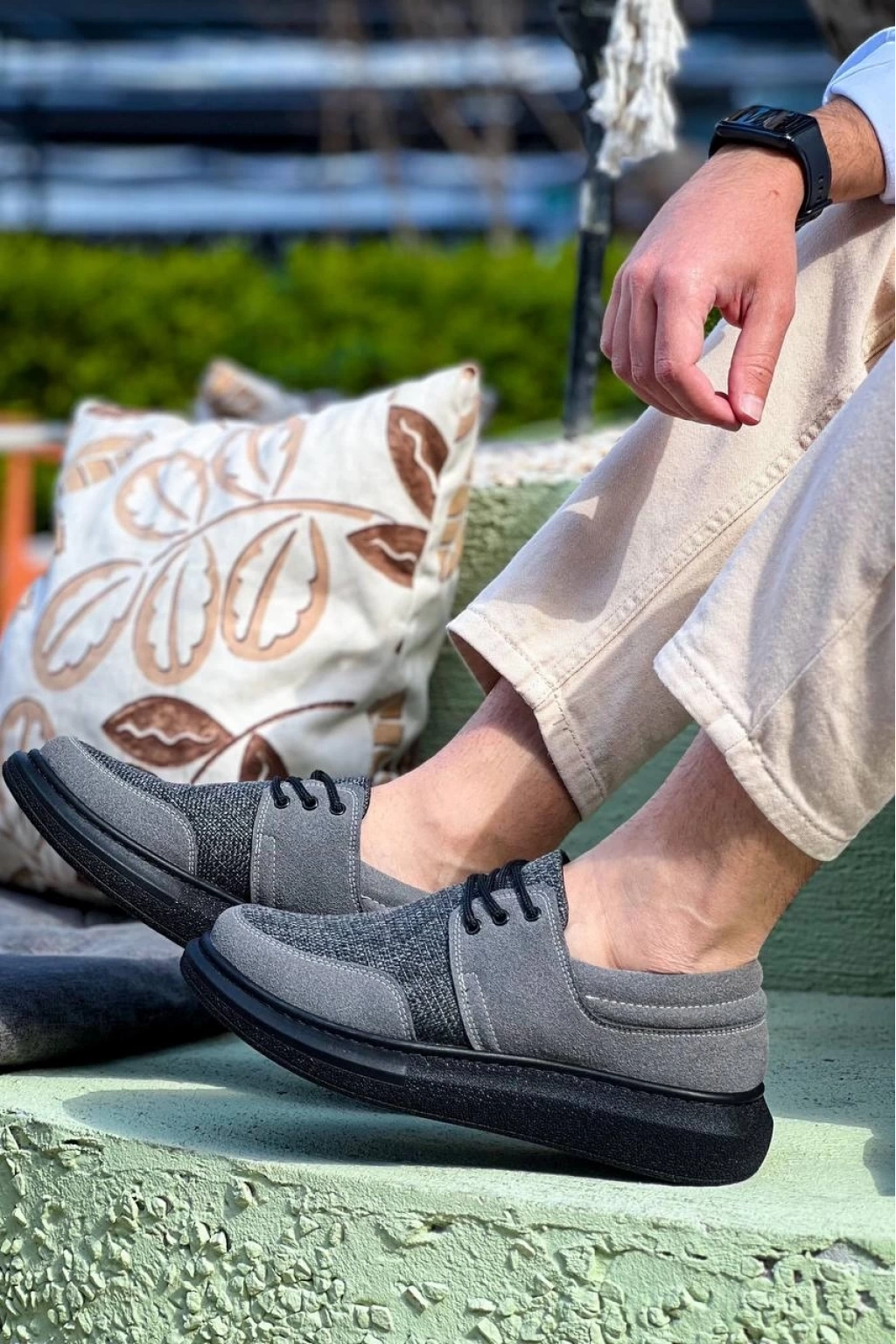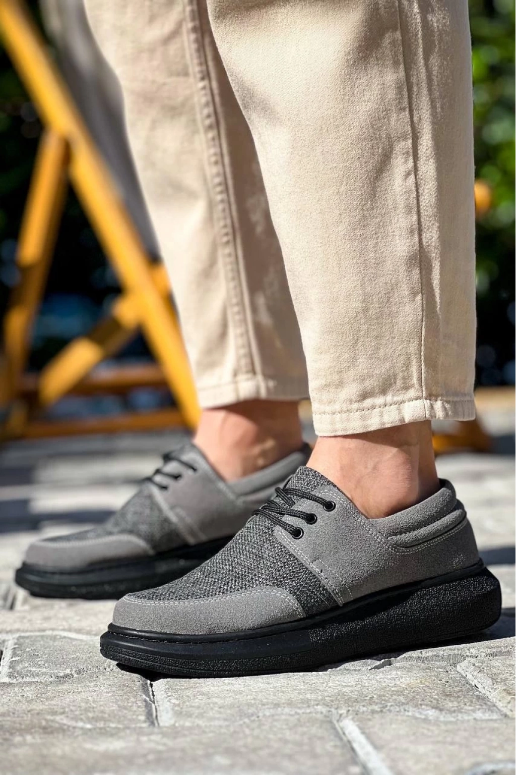 KB-042 Bağcıklı Gri Siyah Taban Günlük Erkek Ayakkabı