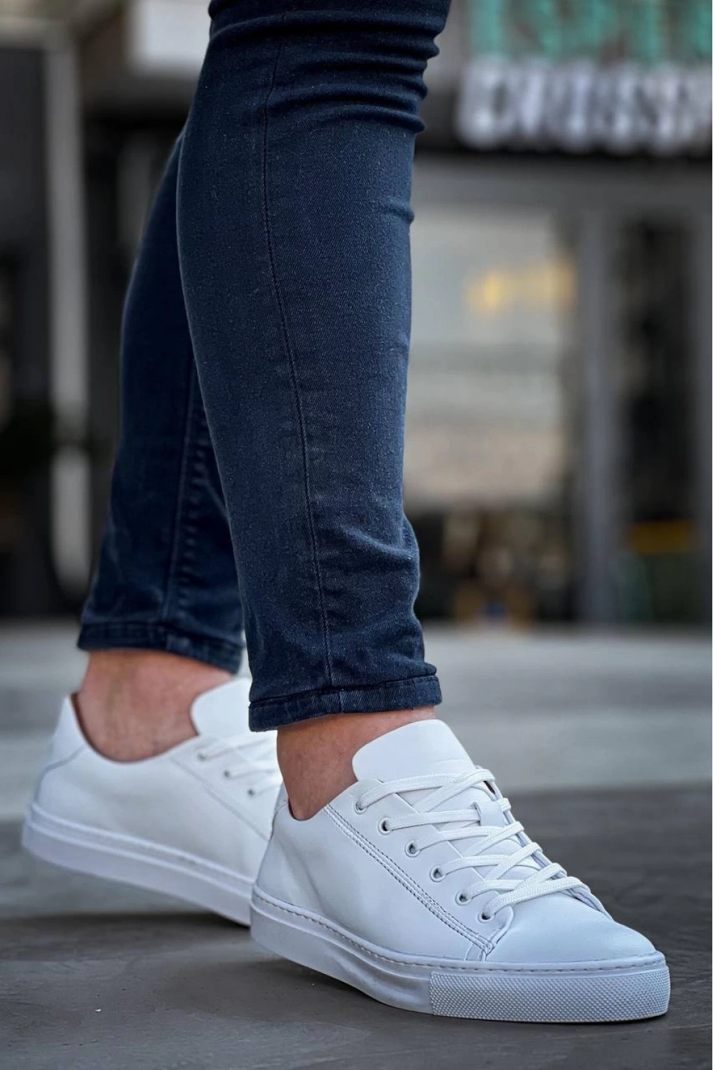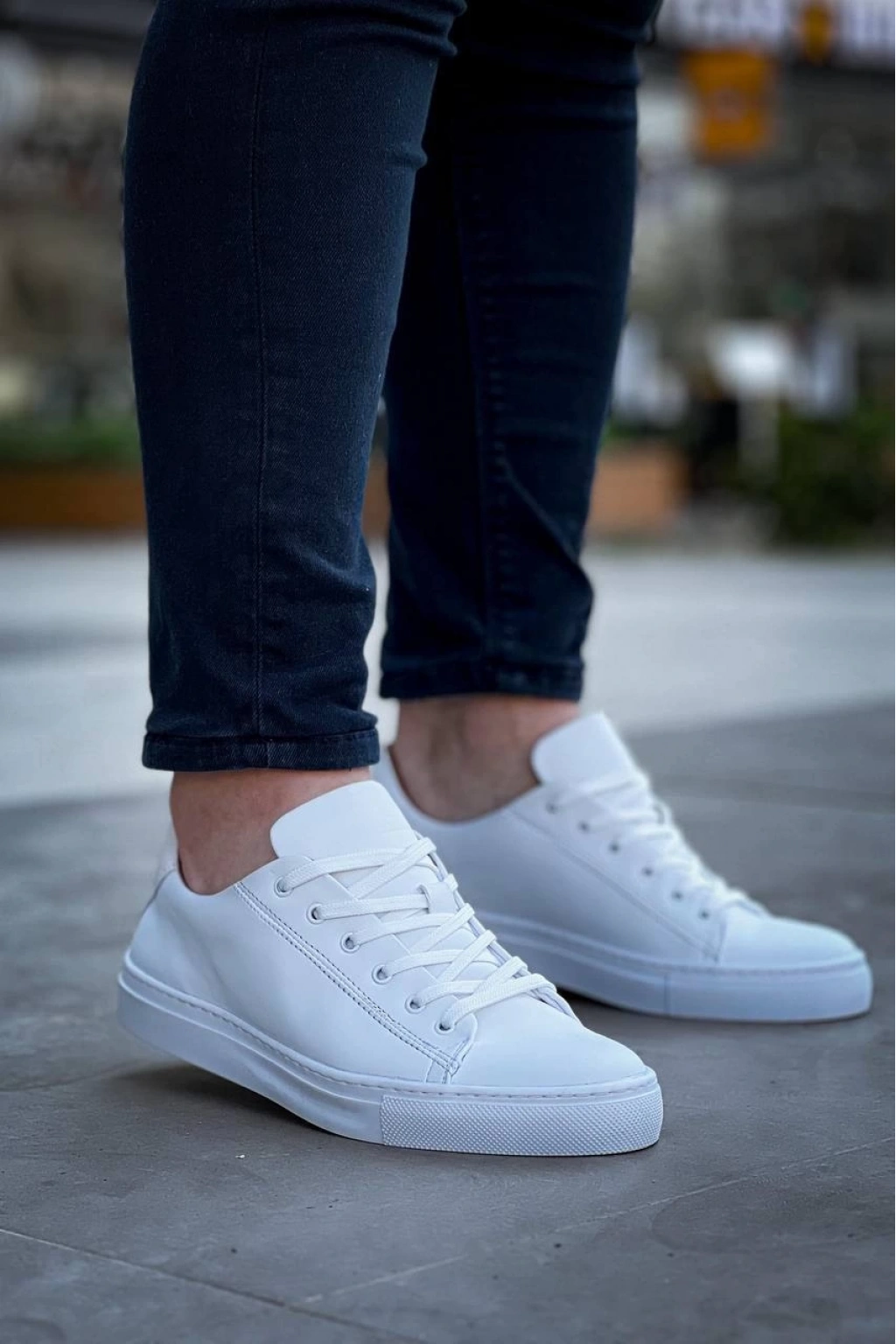 KB-122 Beyaz Cilt Yüksek Taban Bağcıklı Günlük Erkek Ayakkabı