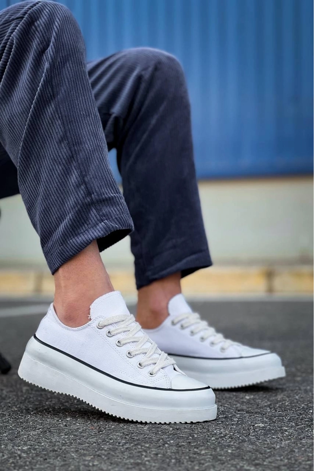 KB-CX-3 Kısa Beyaz Keten Beyaz Yüksek Taban Spor Ayakkabı