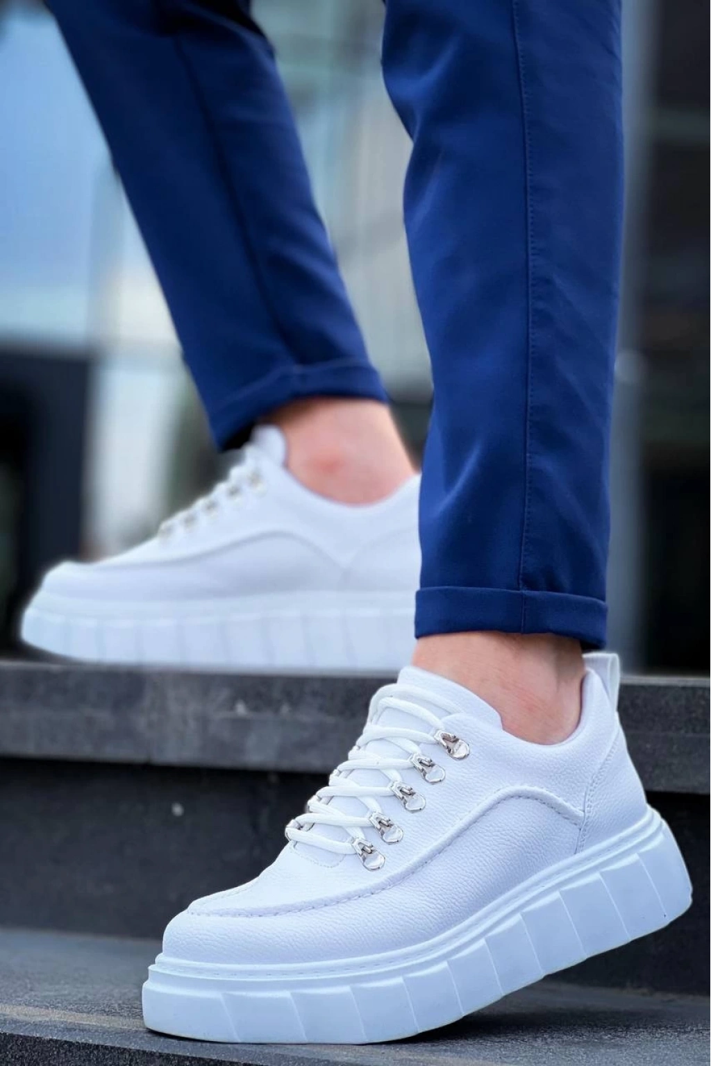 KB-X10 Beyaz Cilt Beyaz Yüksek Taban Günlük Spor Ayakkabı