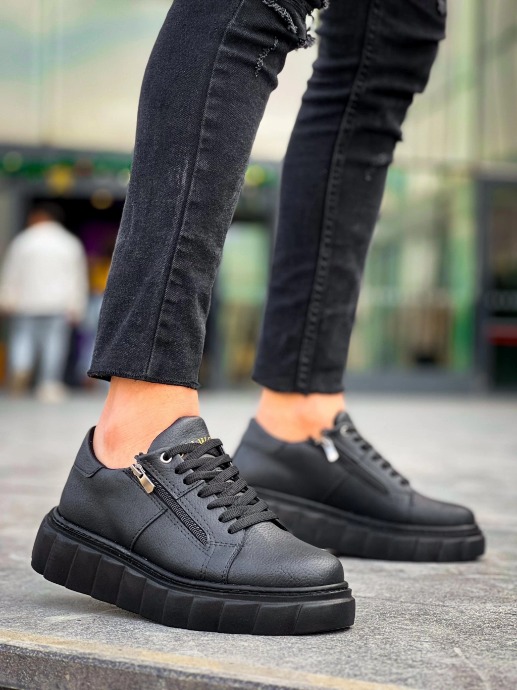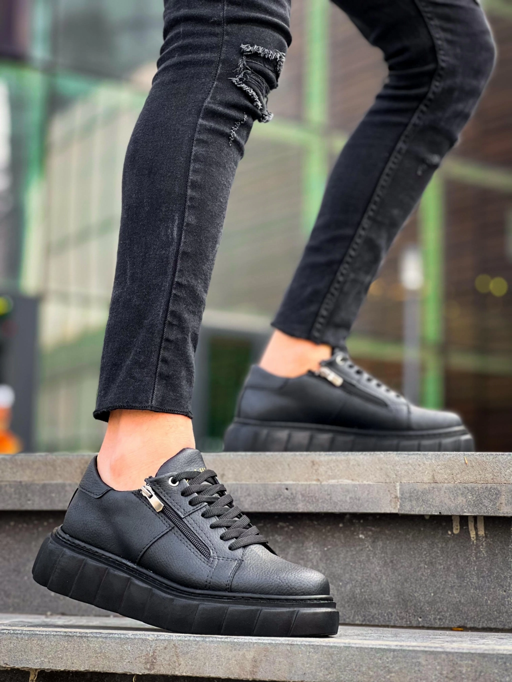 KB-X155 Kuback Siyah Cilt Detaylı Siyah Yüksek Taban Günlük Spor Ayakkabı