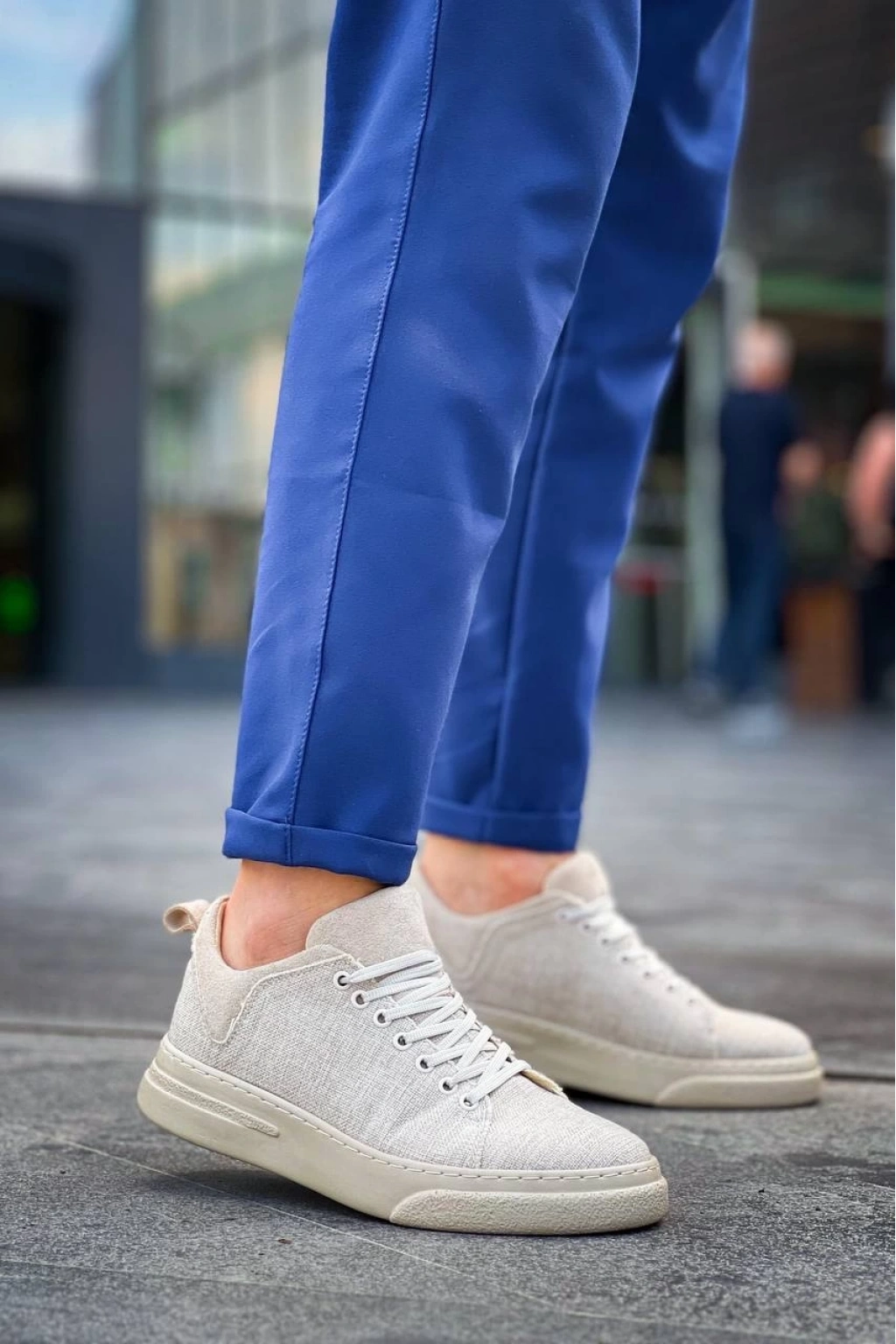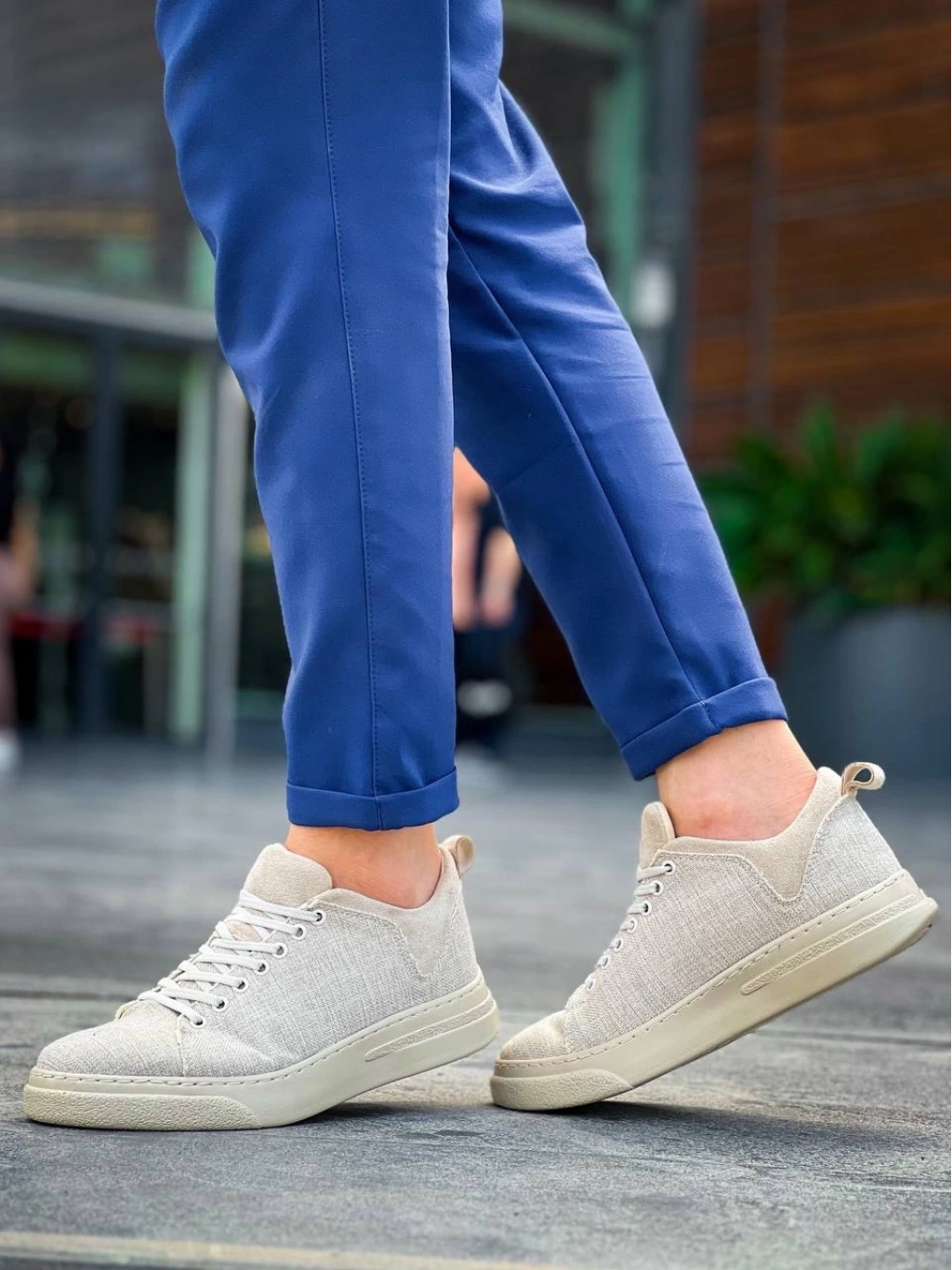 KB-X204 Bej Keten Bej Yüksek Taban Günlük Erkek Spor Ayakkabı