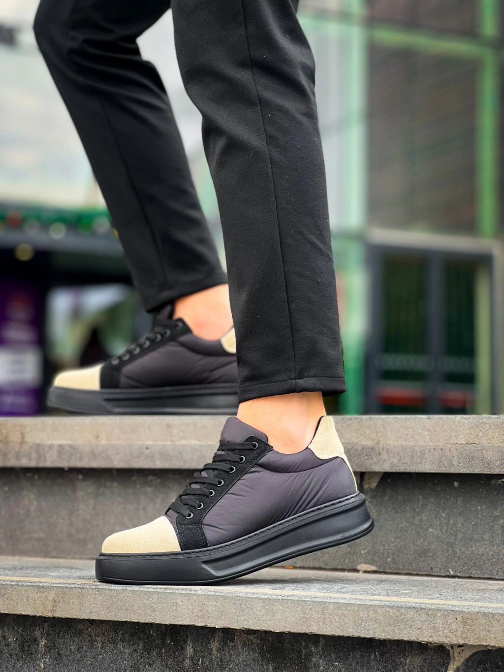 KB-X46 Kuback Siyah Bej Yüksek Siyah Taban Günlük Spor Ayakkabı