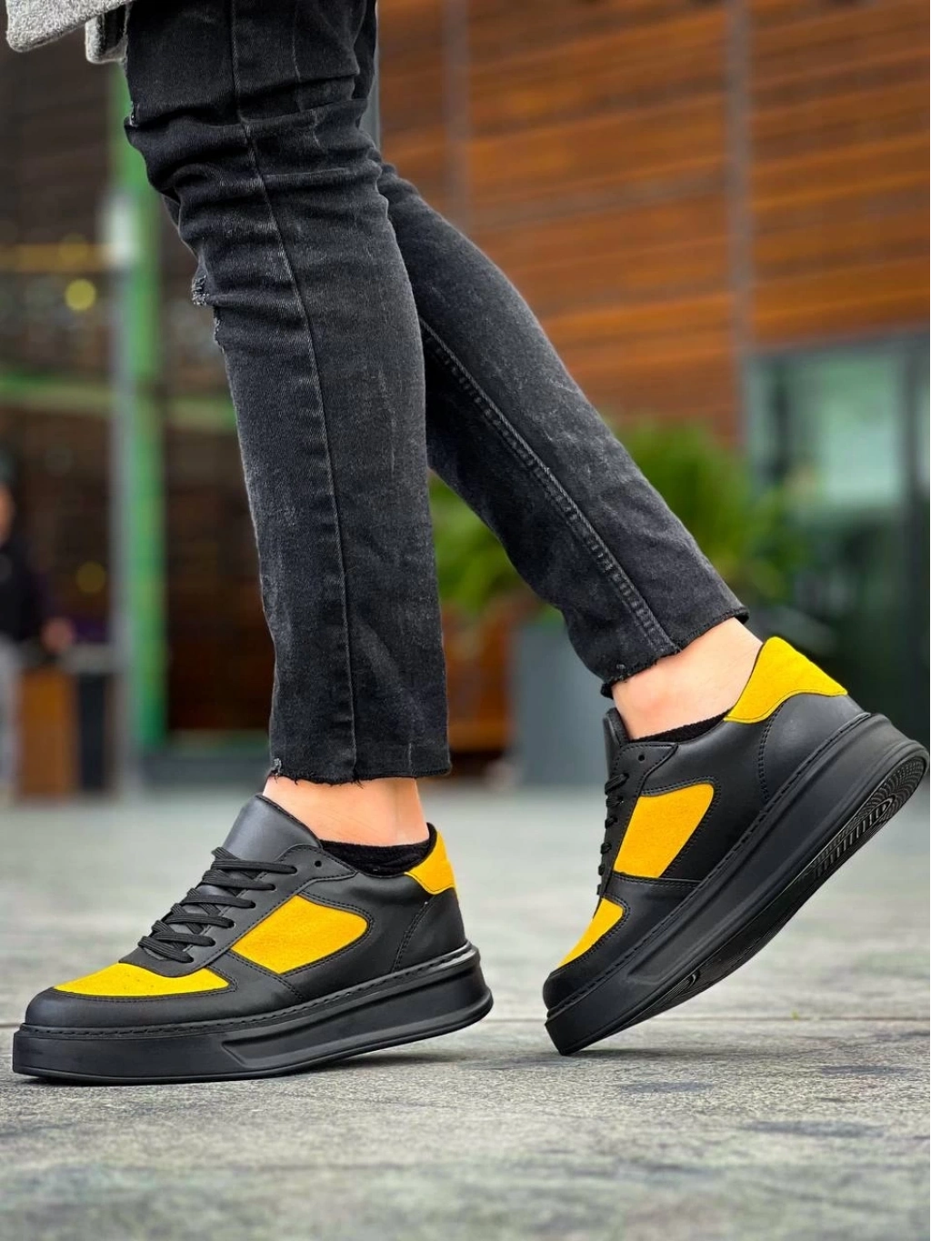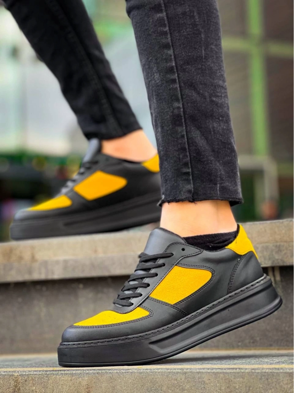 KB-X8 Siyah Sarı Cilt Yüksek Taban Günlük Spor Ayakkabı